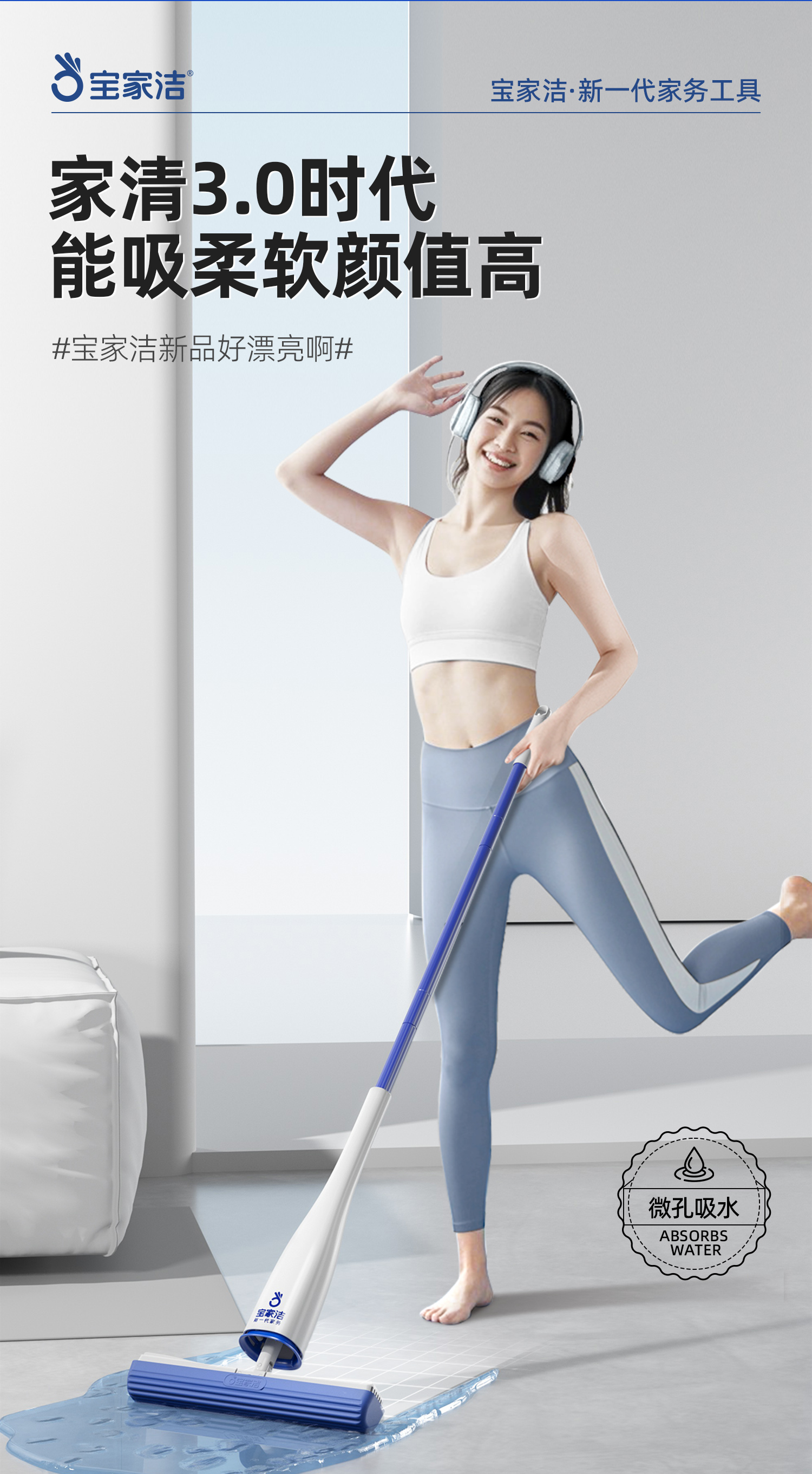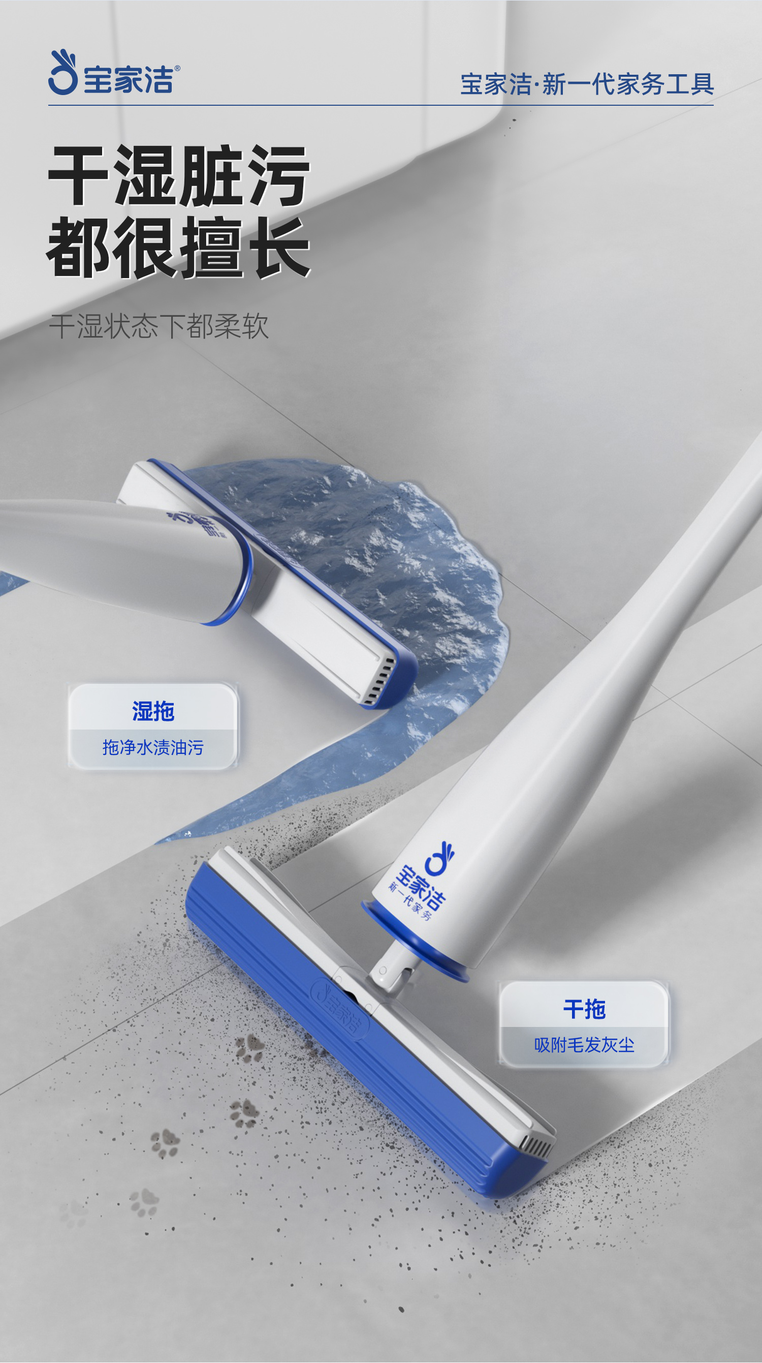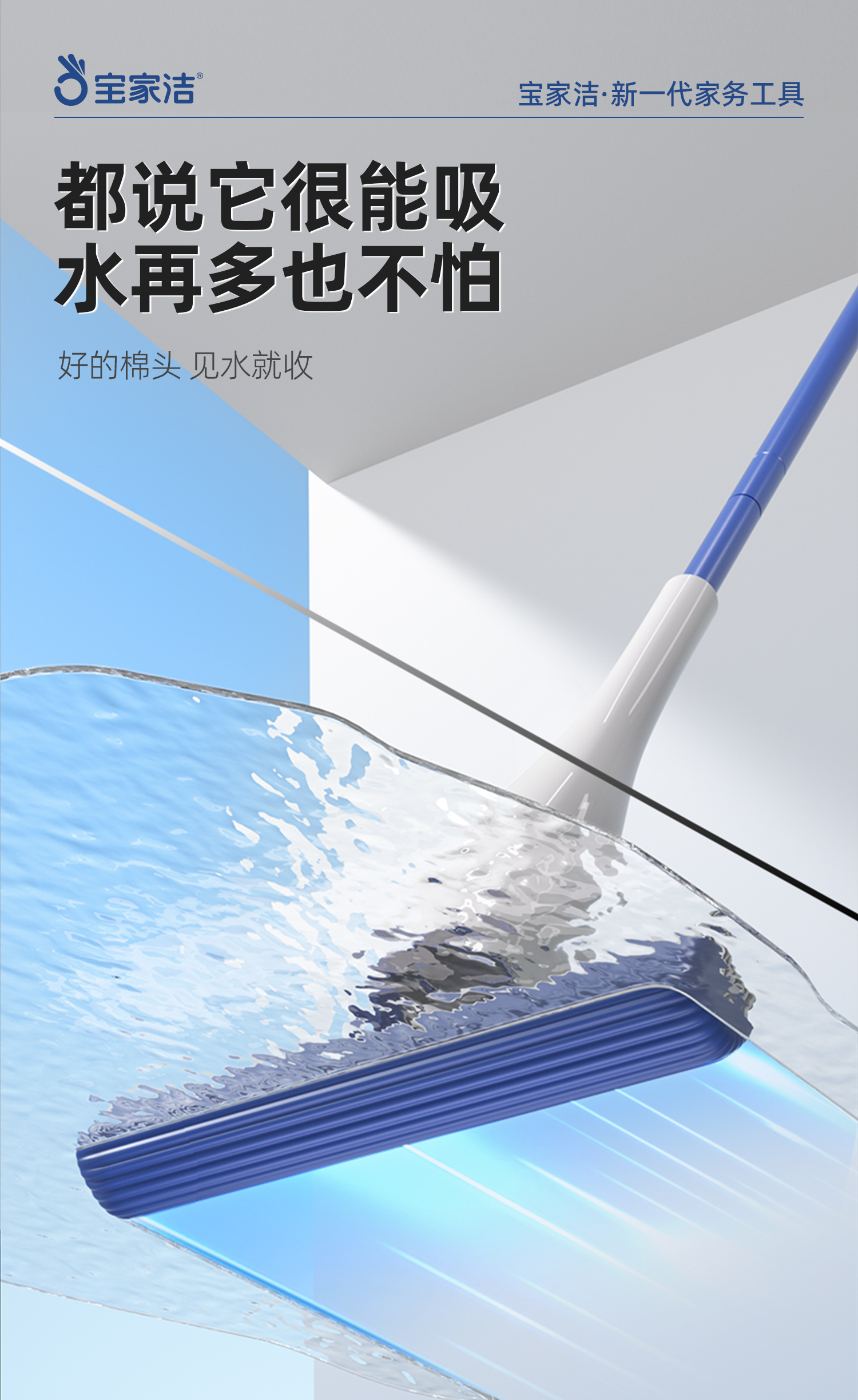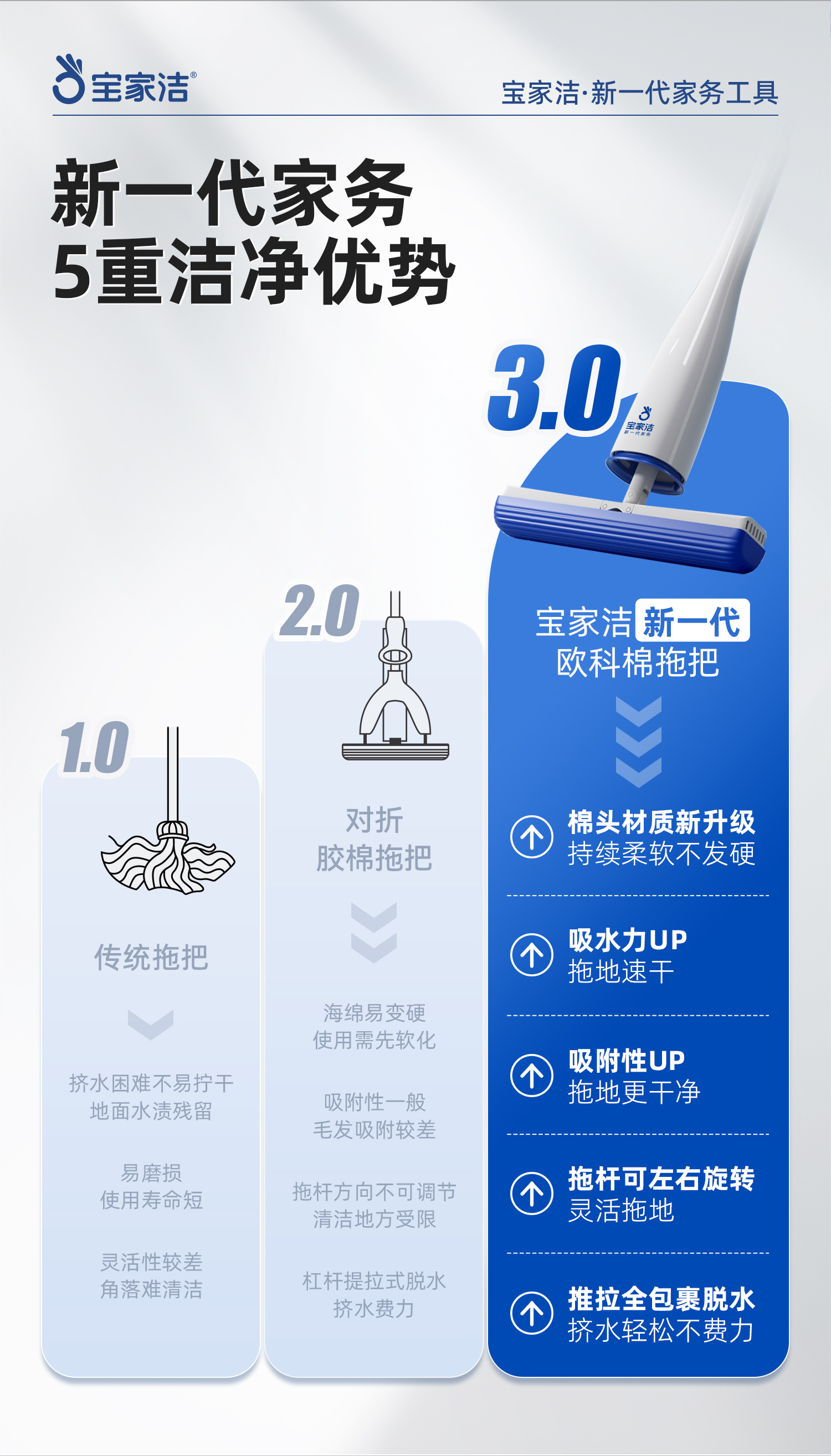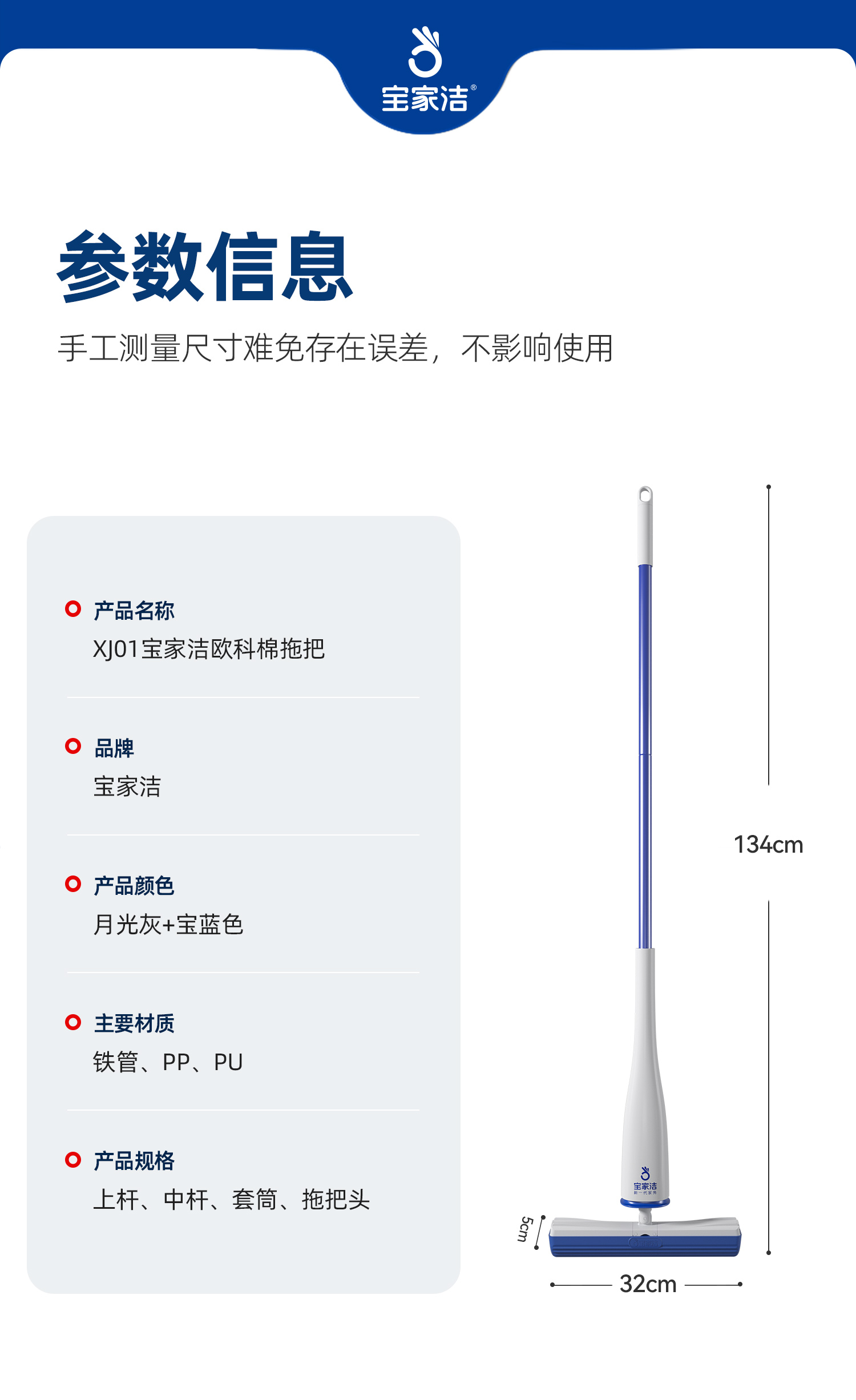 宝家洁(BAOJIAJIE) 胶棉拖把 XJ01 宽32cm配2欧科棉头 白色(单位:把)