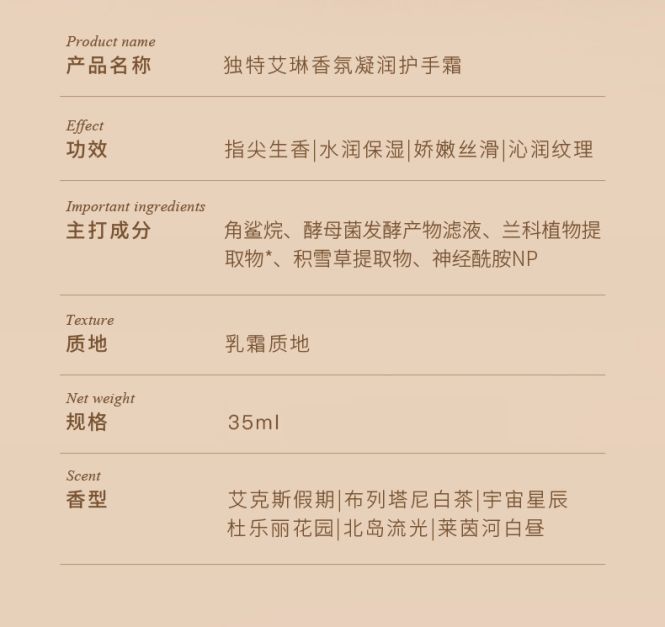 独特艾琳(Dear lrean) 护手霜 北岛流光凝润 35ml 白色(单位:支)