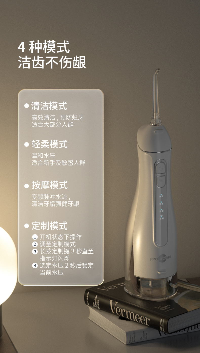 博皓(prooral) 立式手持冲牙器 F27pro 300ML 信仰白(单位:台)