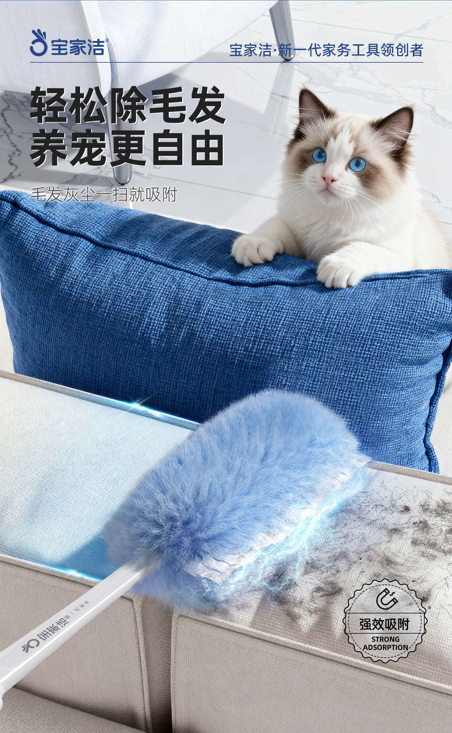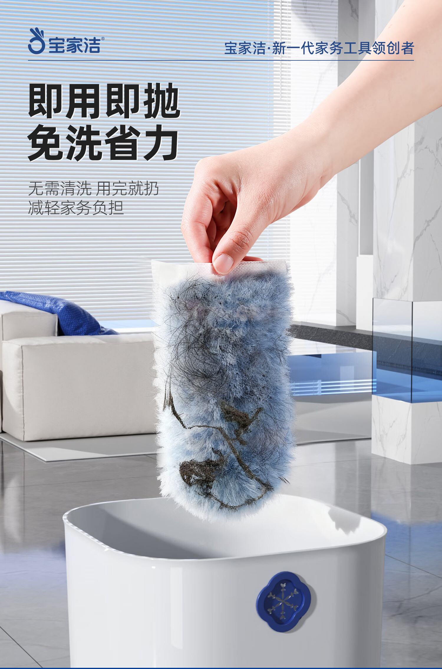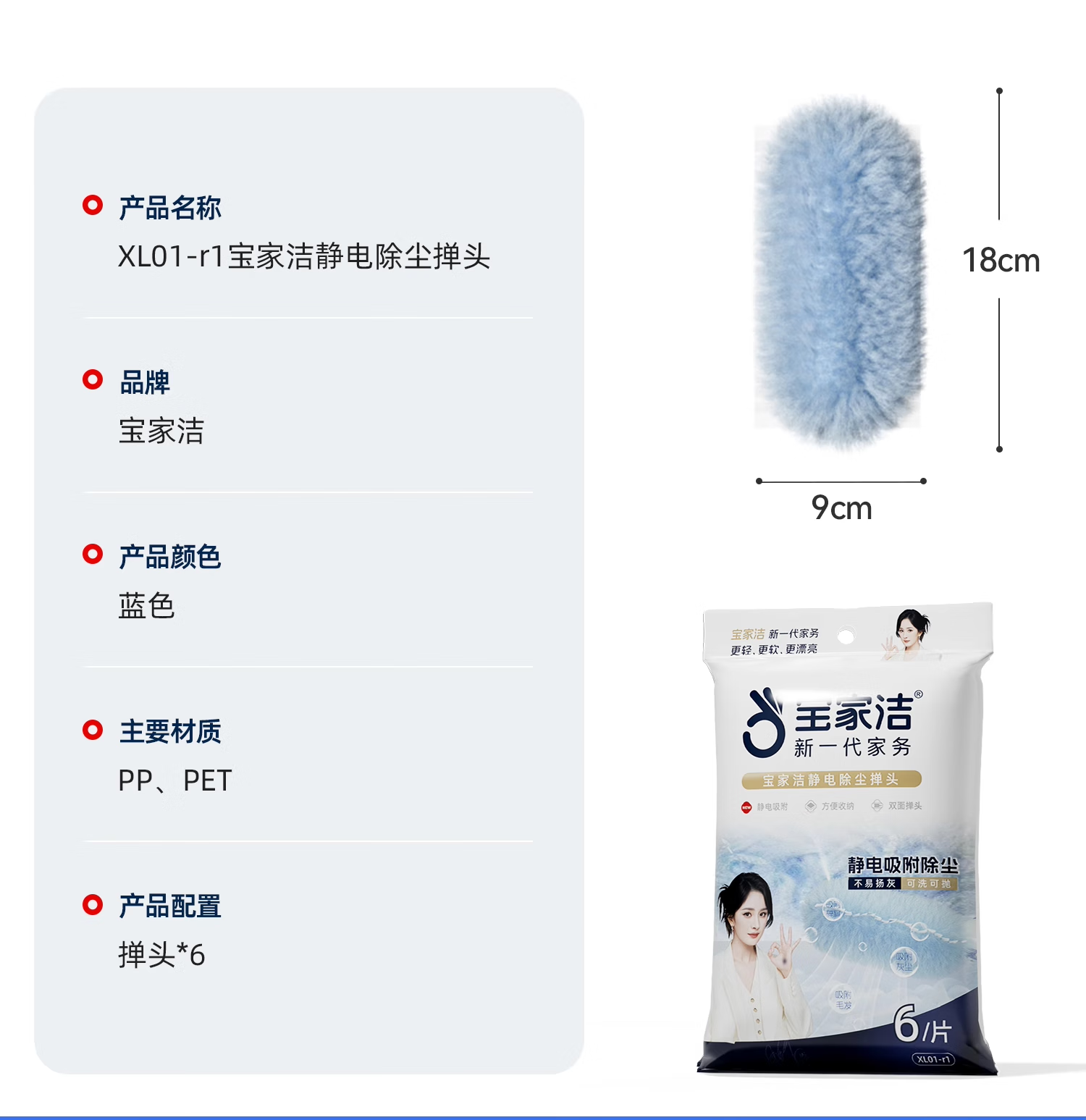 宝家洁(BAOJIAJIE) 一次性除尘掸头替换装 XL01-r1 6片/包 蓝色(单位:包)