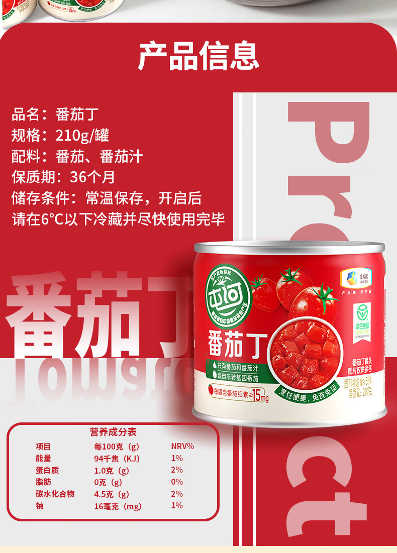 屯河 番茄丁 中粮 200g*6罐 红色(单位:组)