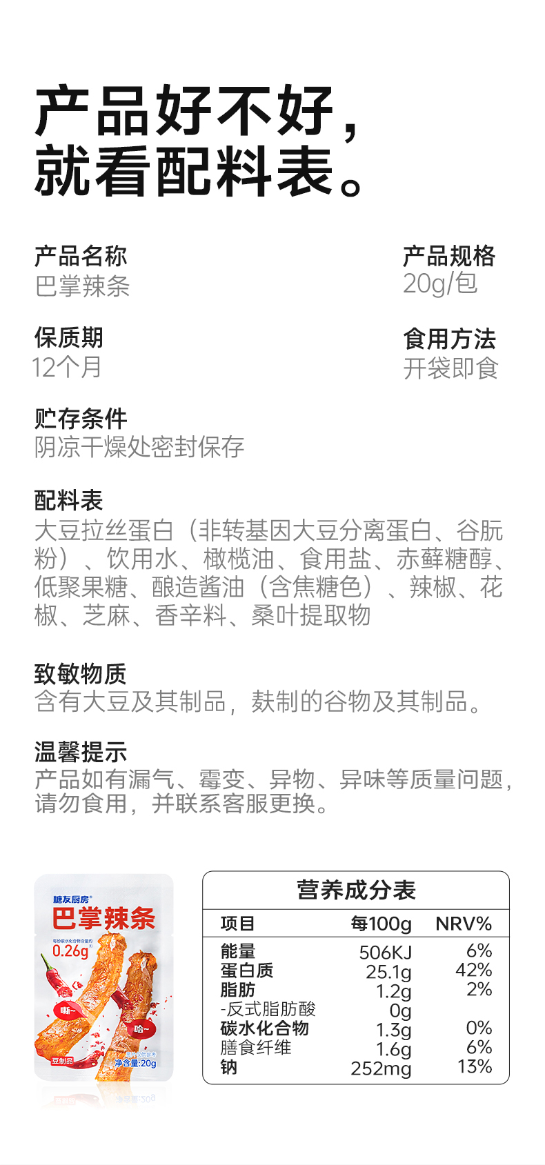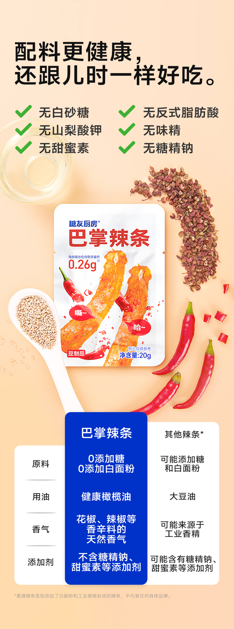 糖友厨房 巴掌辣条 劲道弹韧 辣香四溢 20g*10 黄色(单位:袋)