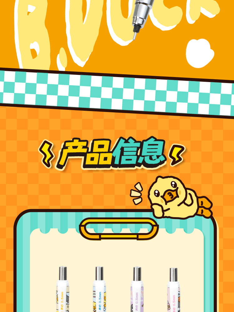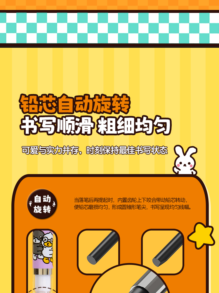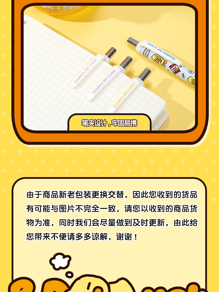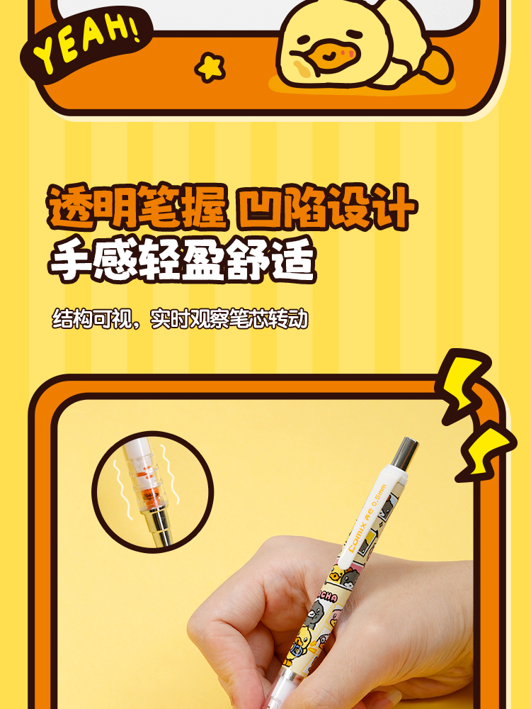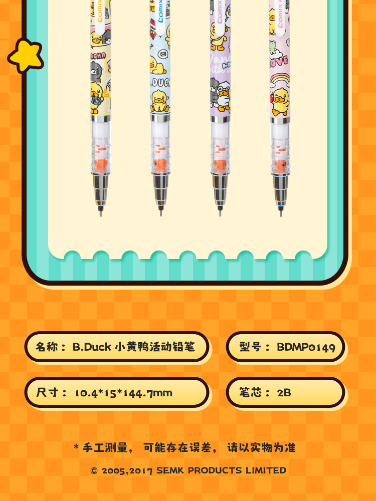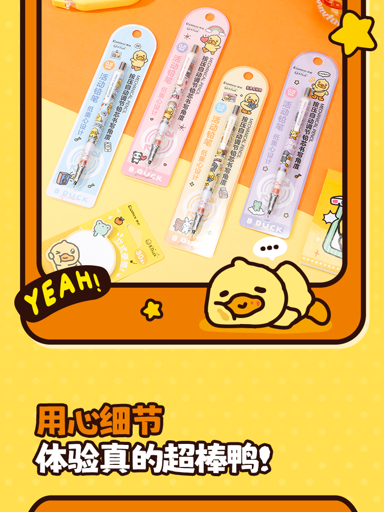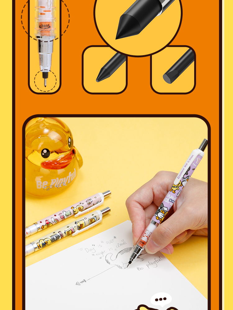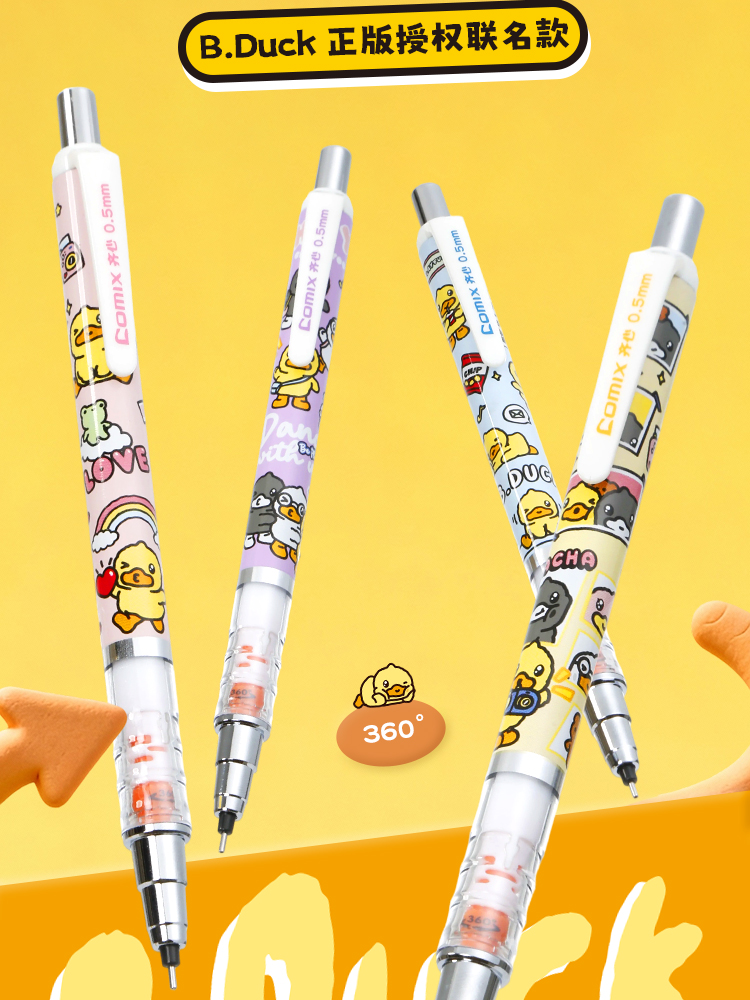 齐心(COMIX) 小黄鸭活动铅笔带PDQ 0.5mm2B BDMP0149 一支装 混色(单位:卡)