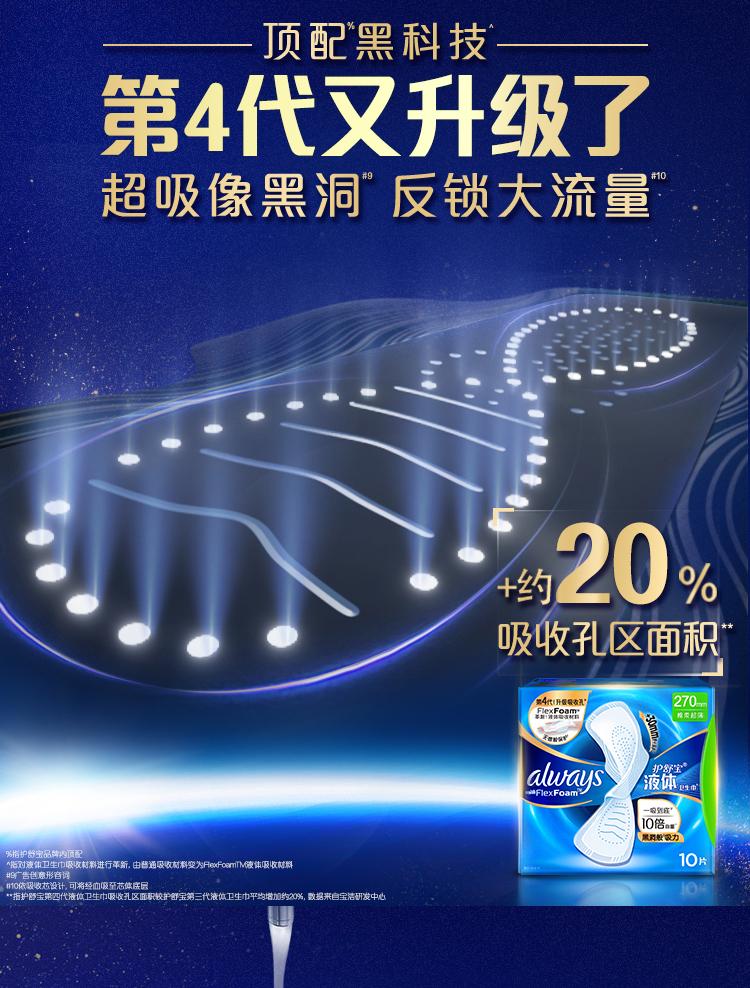 护舒宝(ALWAYS) 液体卫生巾量多日用 姨妈巾 270mm*20片 宝石蓝(单位:组)