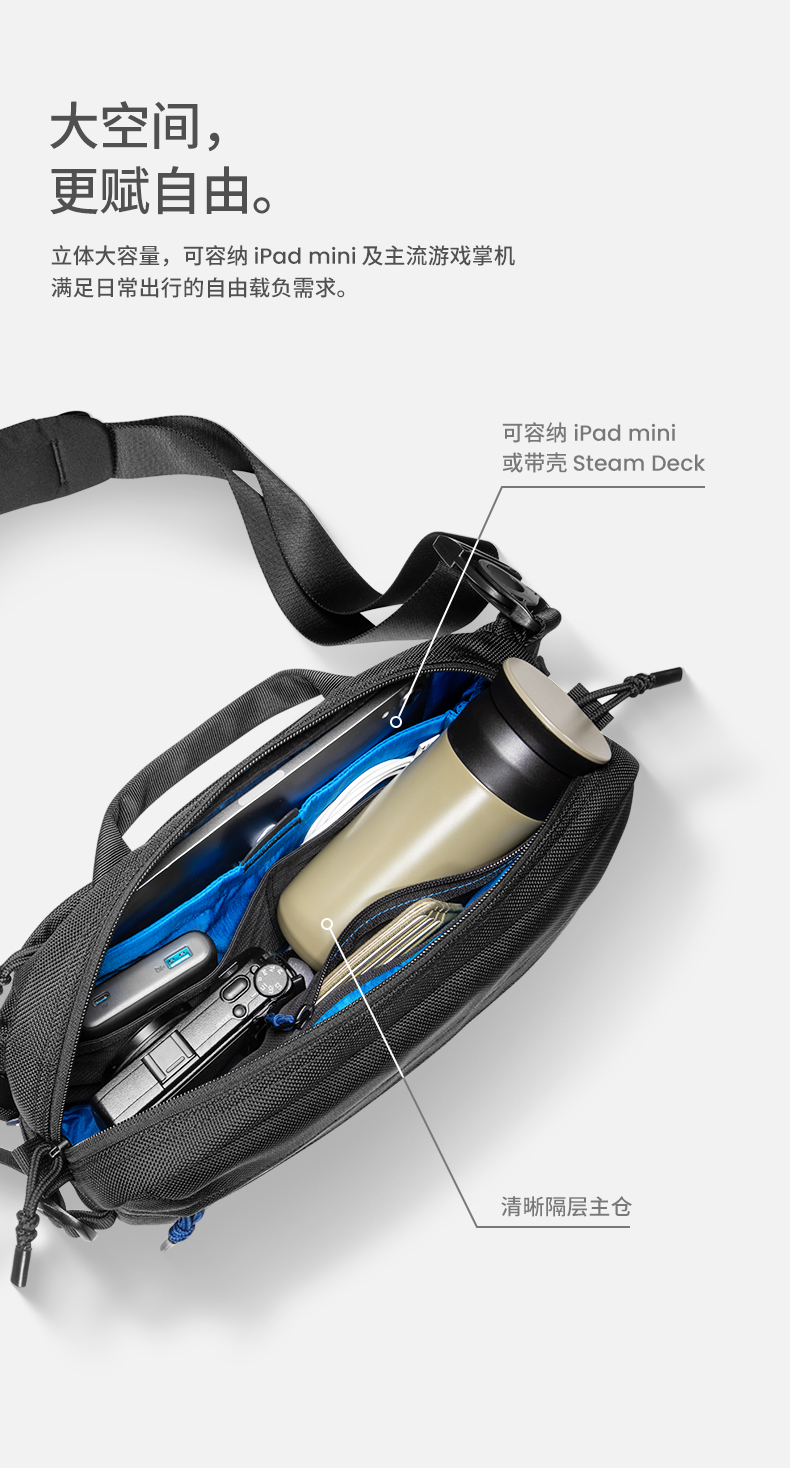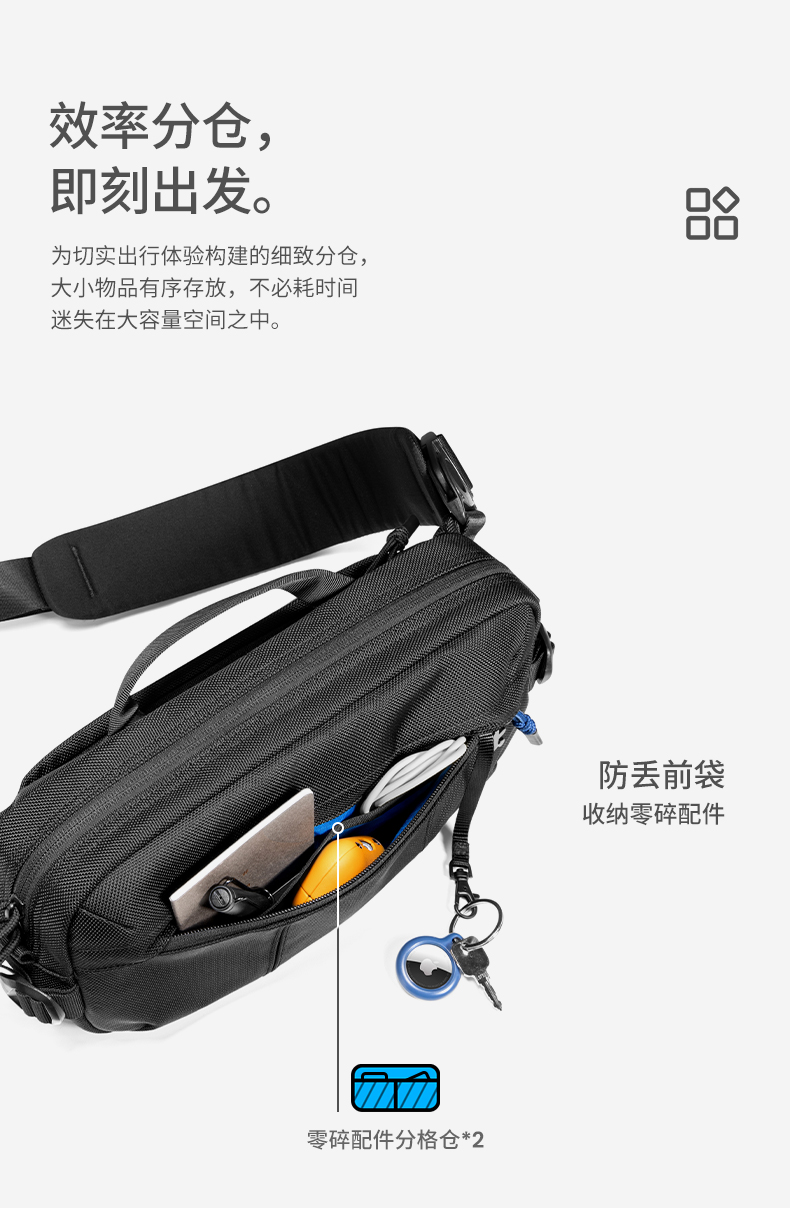 TOMTOC Wander-循迹探索斜挎包 T26S1D1 5.5L 曜石黑(单位:个)