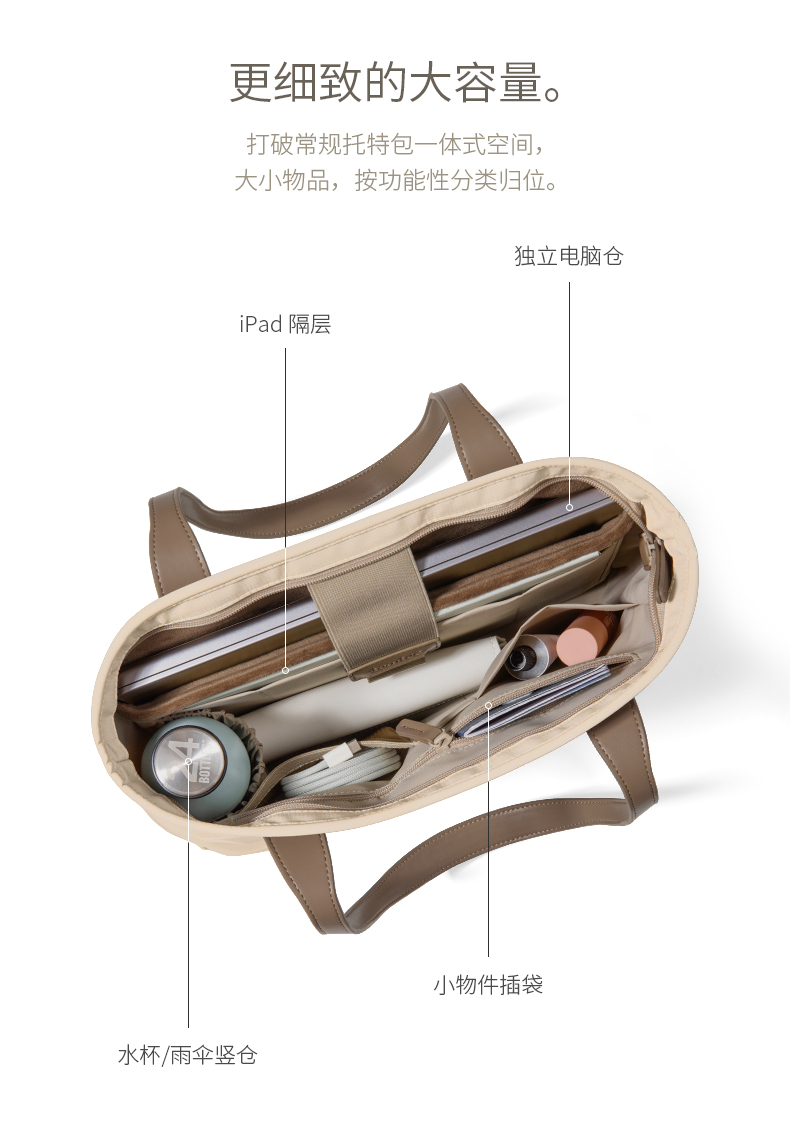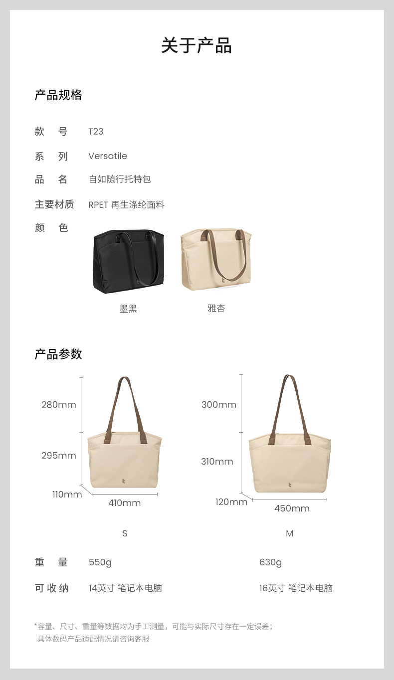 TOMTOC Versatile-T23S1K1自如随行托特包 T23S1K1 S码 雅杏(单位:个)