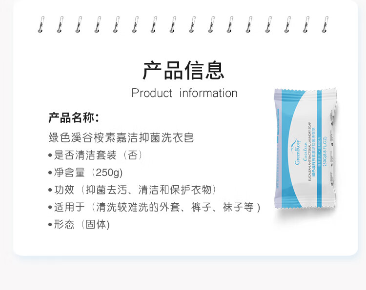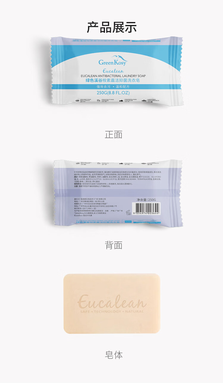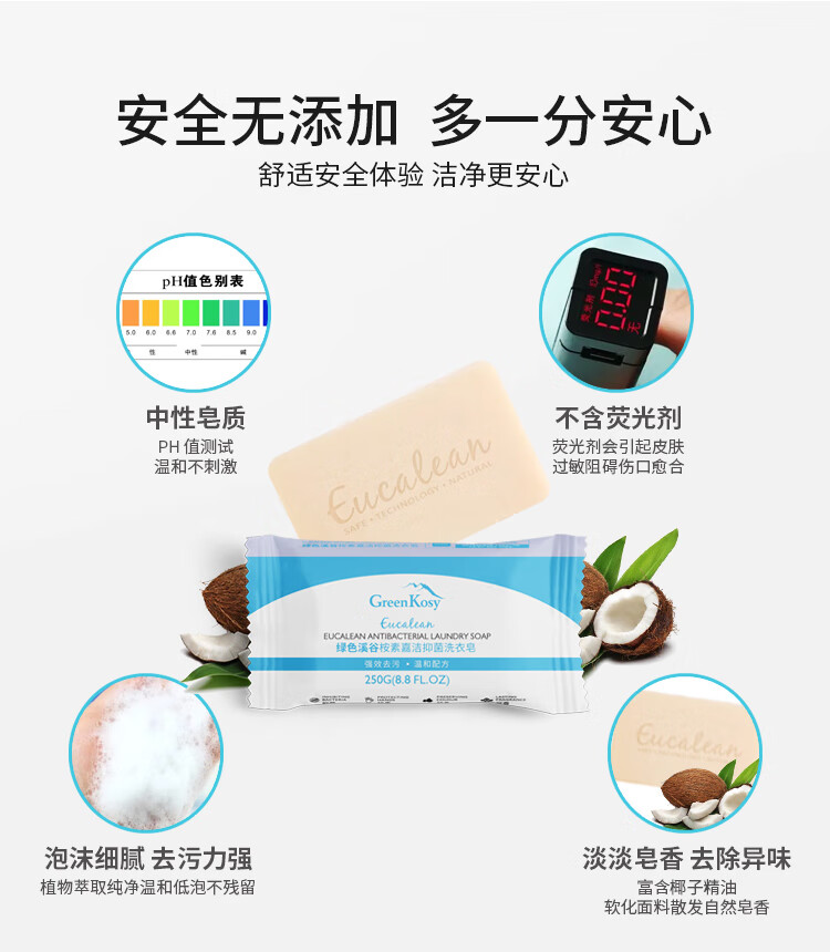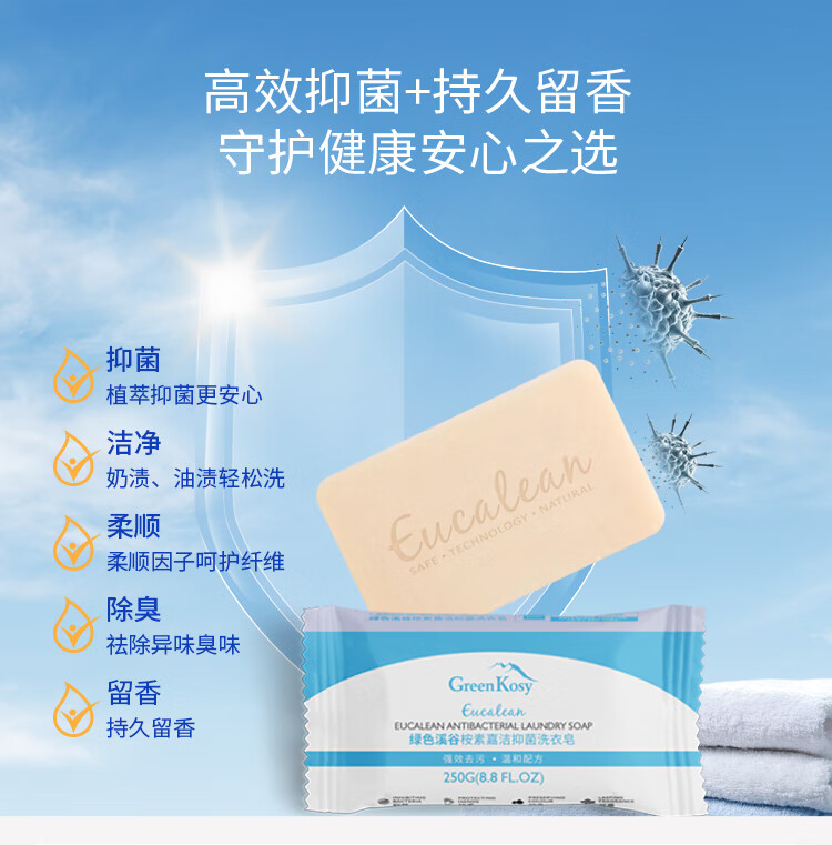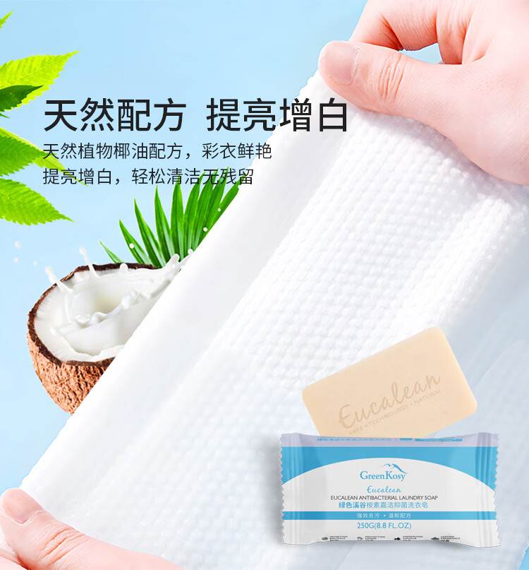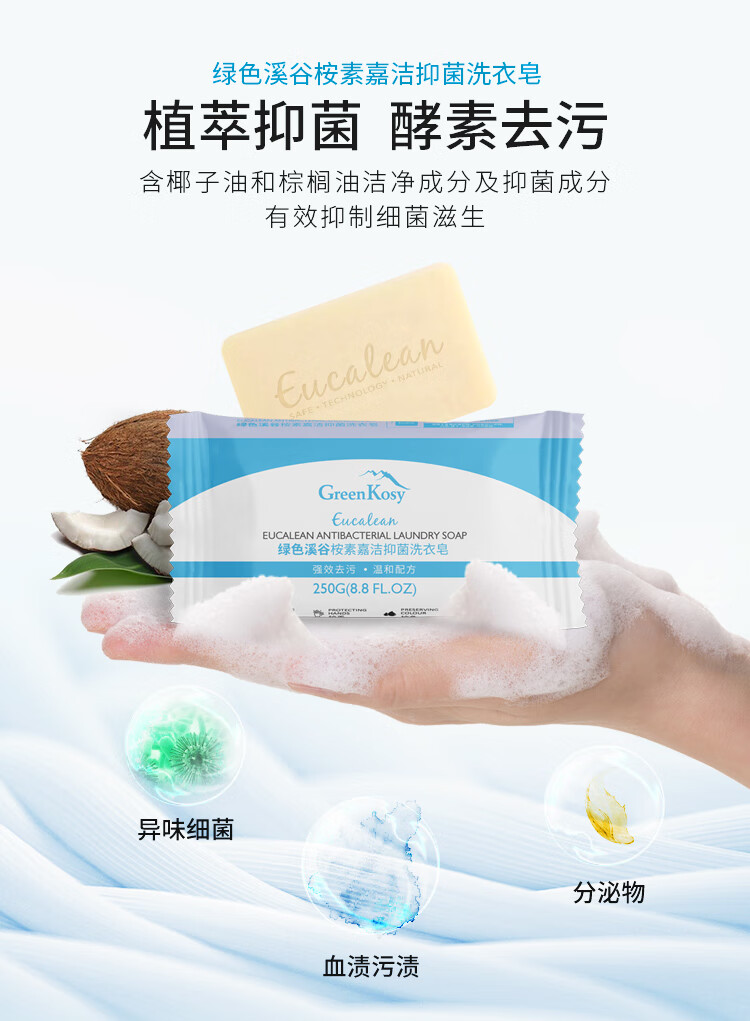 绿色溪谷(GREENKOSY) 适用贴身衣物不伤手深层祛渍 桉素嘉洁抑菌洗衣皂 250g*1块 混色(单位:块)