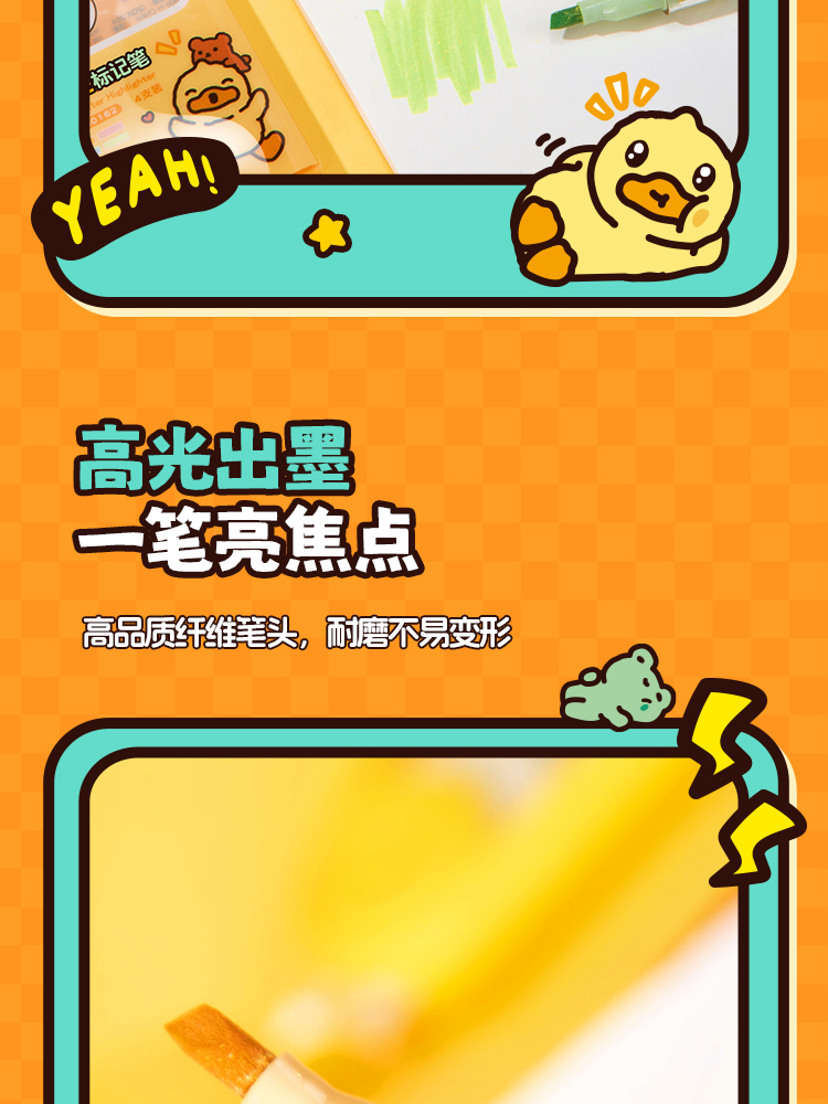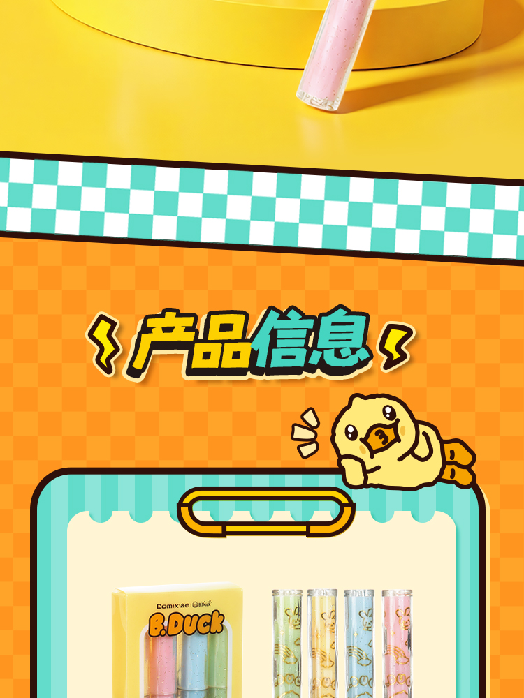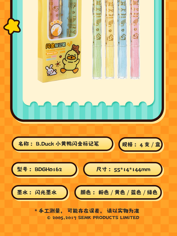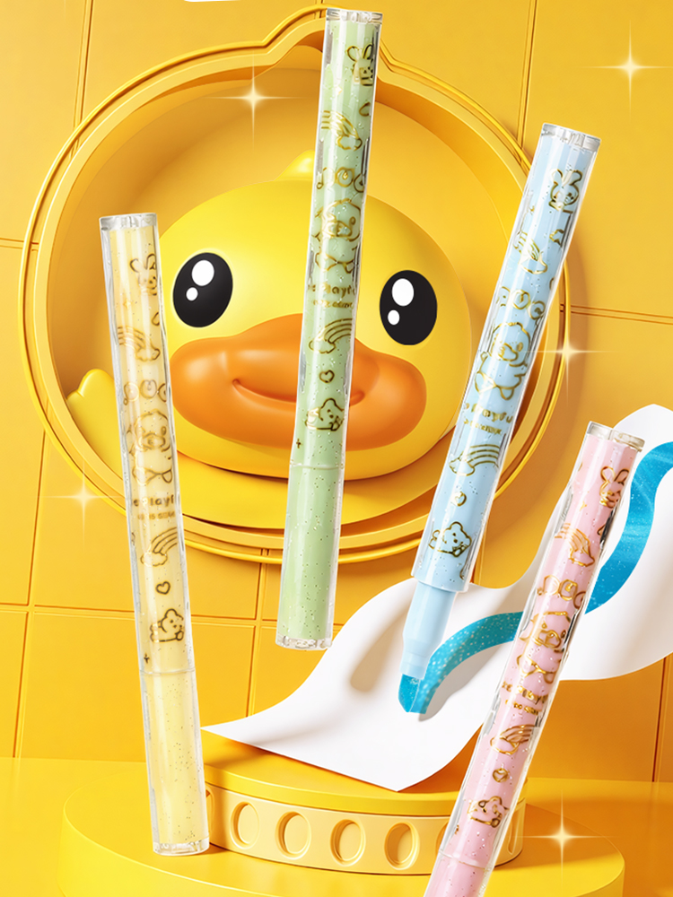 齐心(COMIX) 小黄鸭闪金标记笔 BDGH0162 4支装 混色(单位:盒)