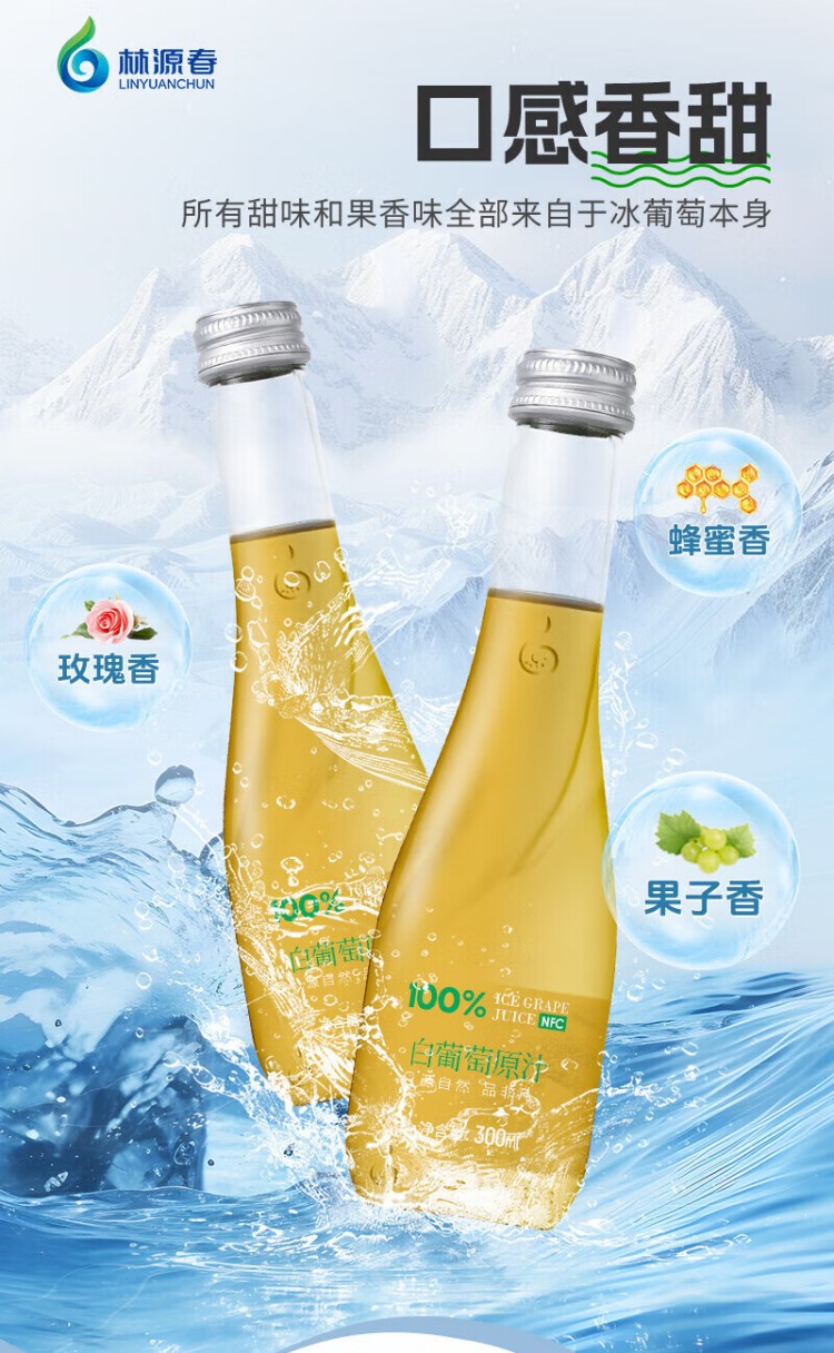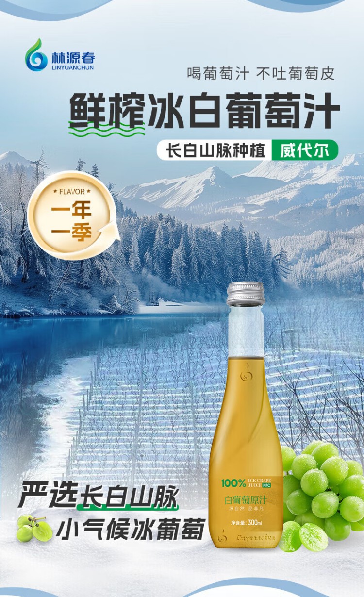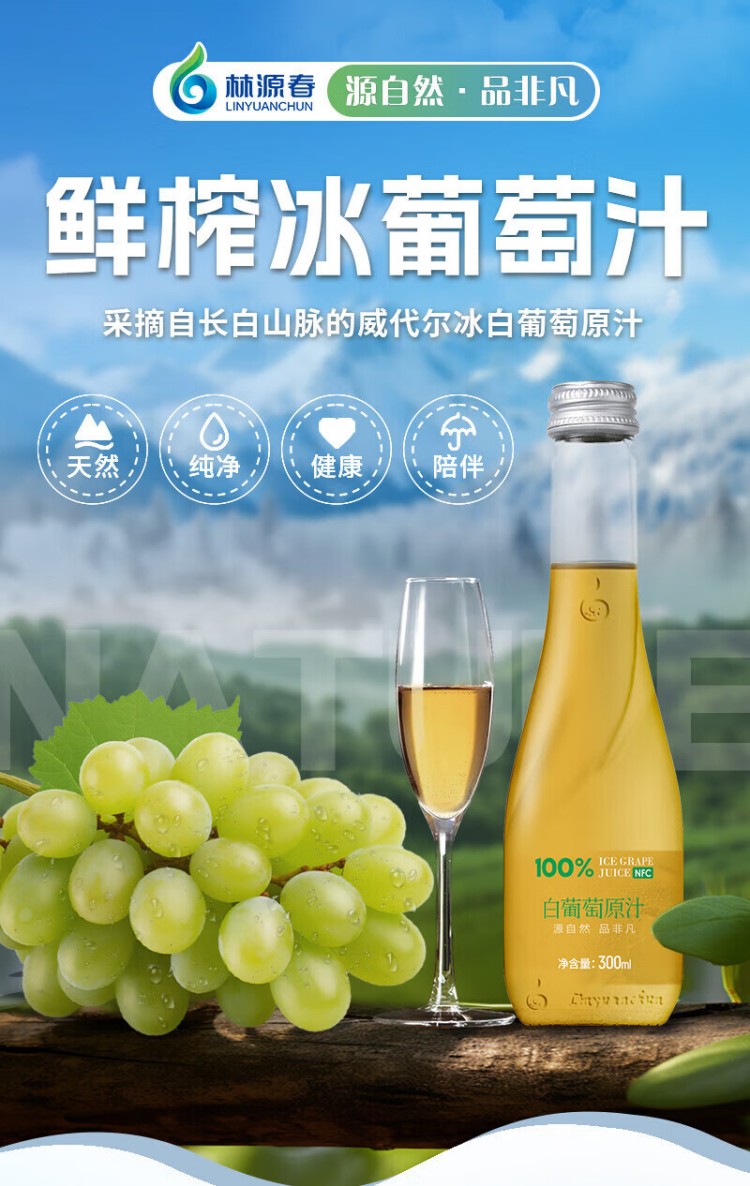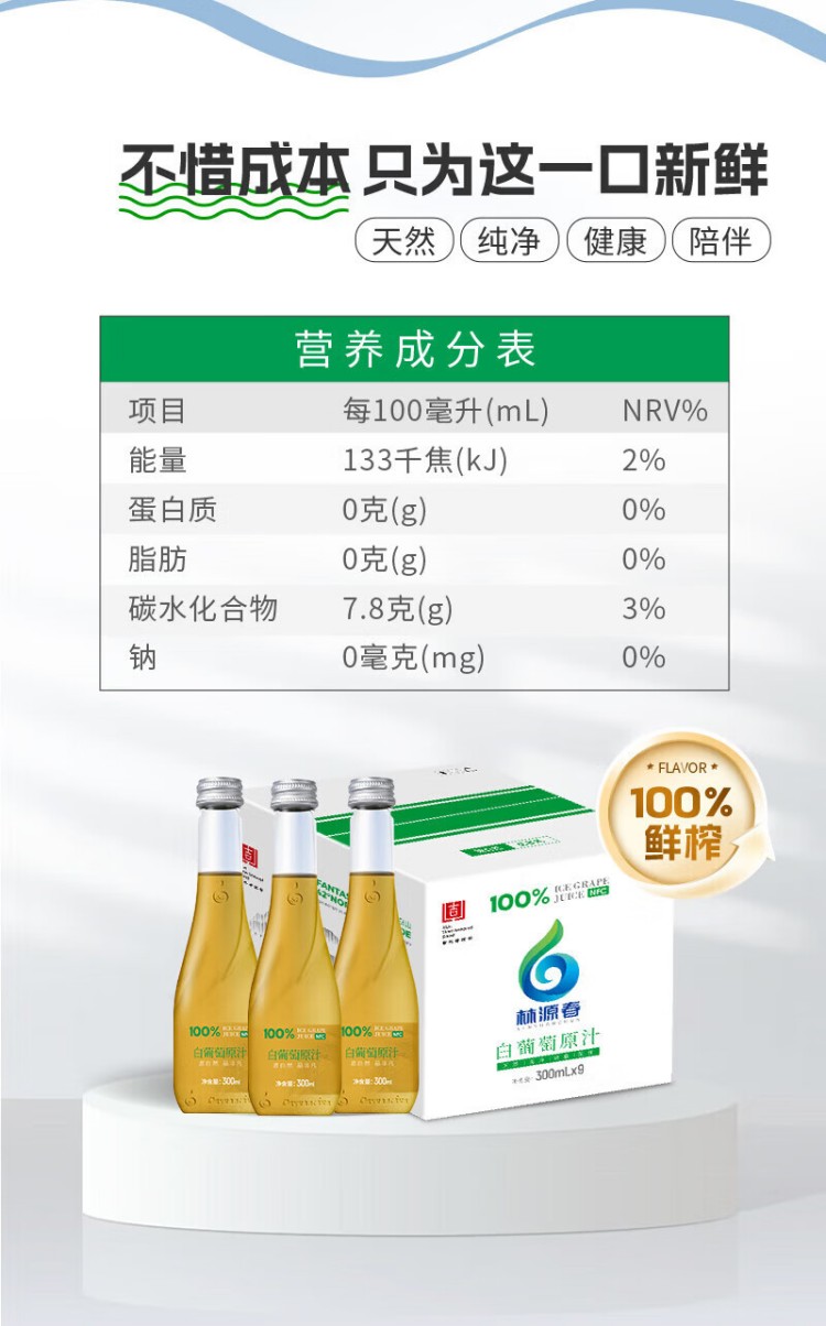 林源春 北冰白葡萄汁 100%NFC 300ml*9 黄色(单位:箱)