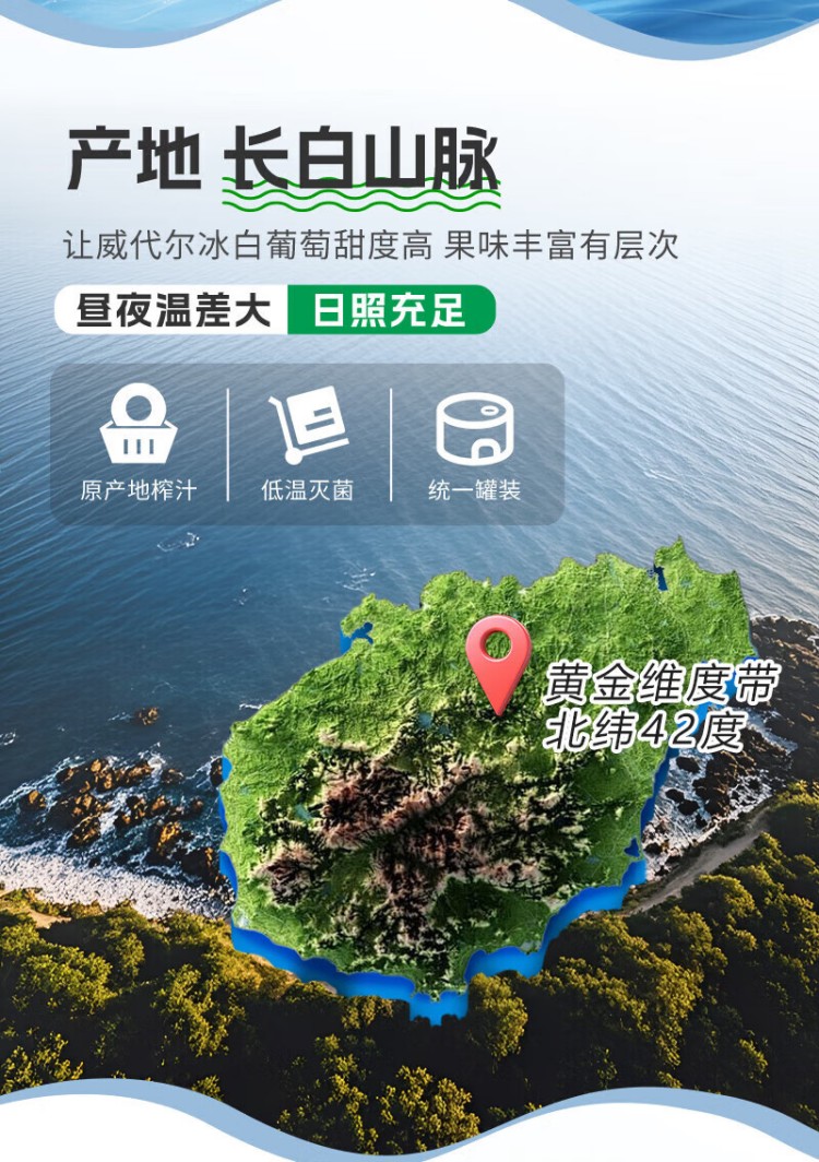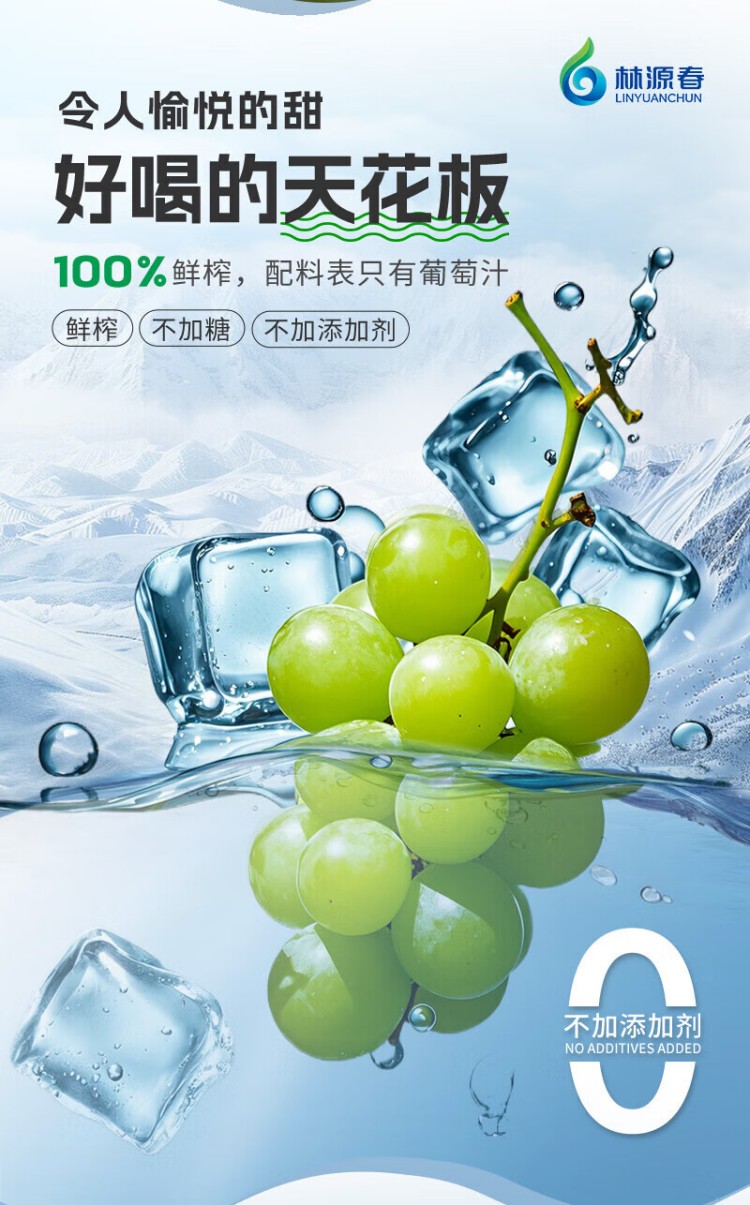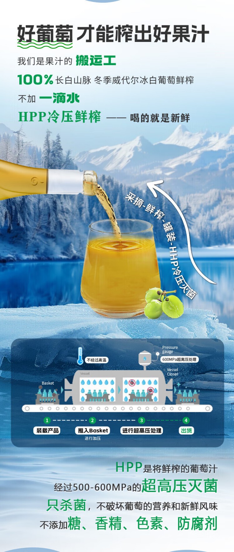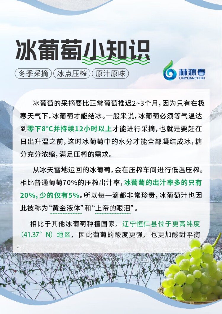 林源春 北冰白葡萄汁 100%NFC 300ml*9 黄色(单位:箱)