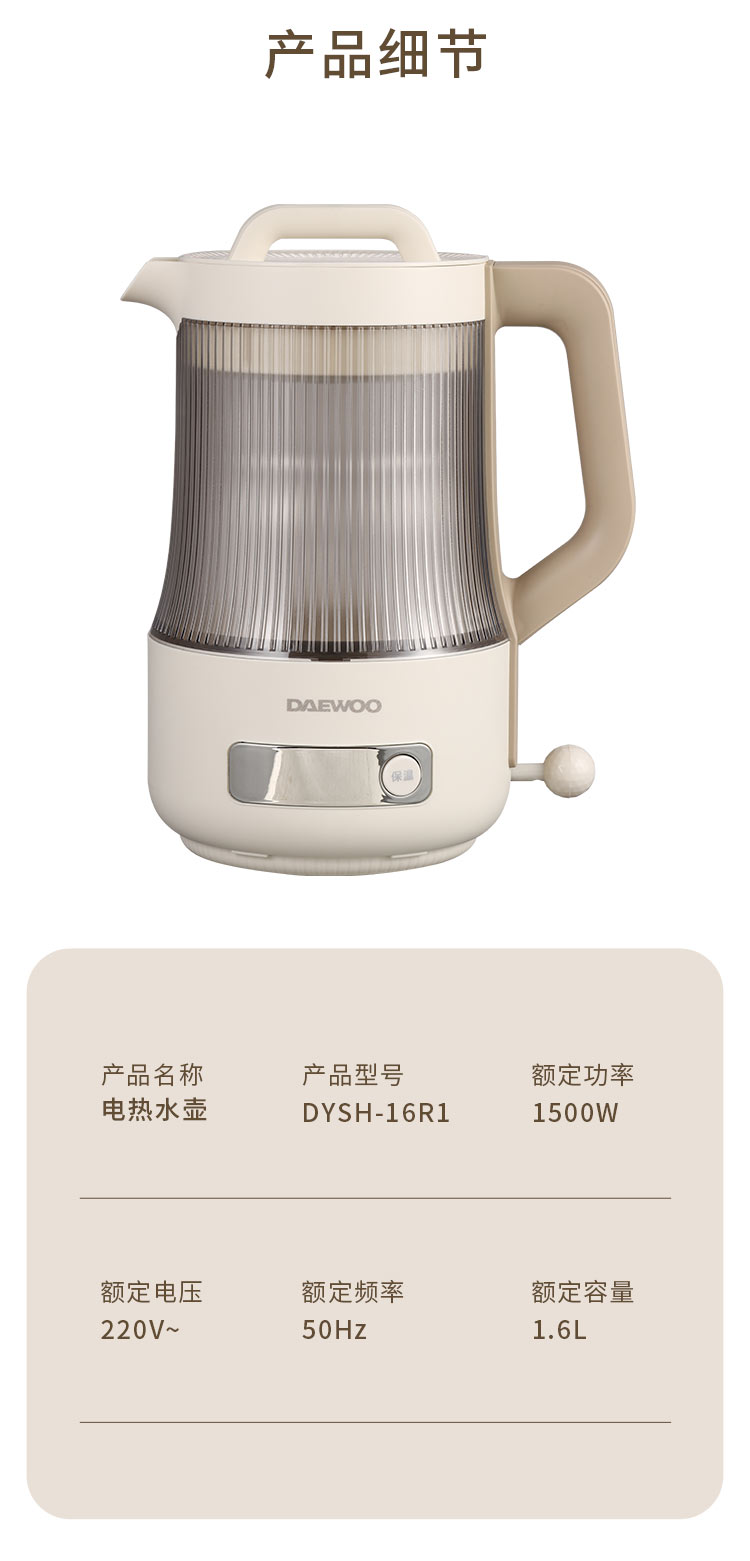 大宇(DAEWOO) 电热水壶 DYSH-16R1 1.6L 伯爵白(单位:台)