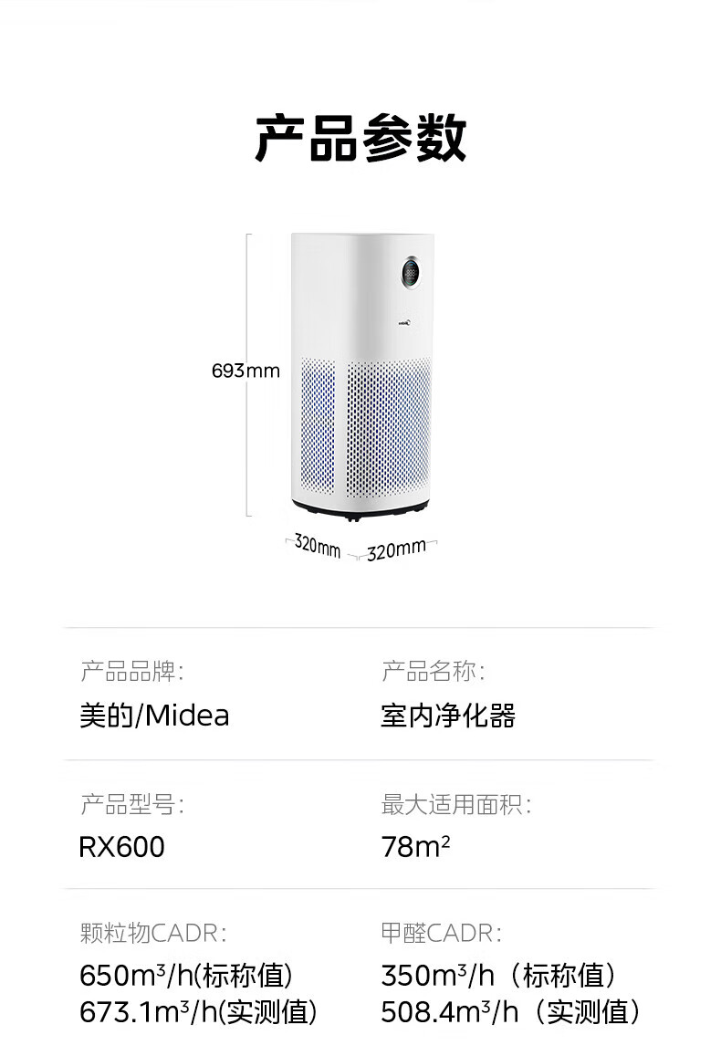 美的(Midea) 空气净化器 KJ600G-RX600 673.1m³/h 白色(单位:台)