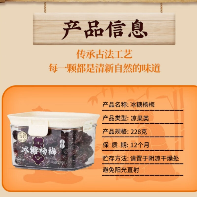 泉利堂 冰糖杨梅 果干蜜饯 228g/罐 白色(单位:盒)