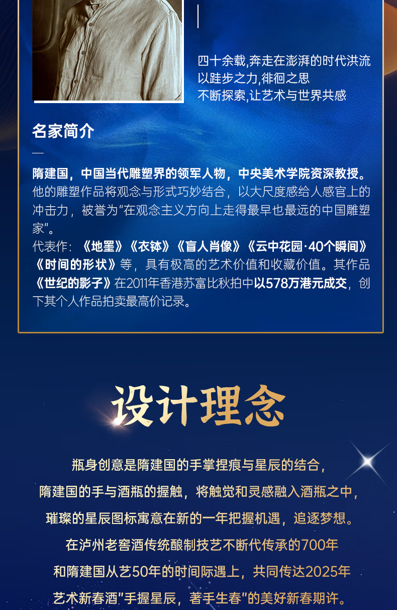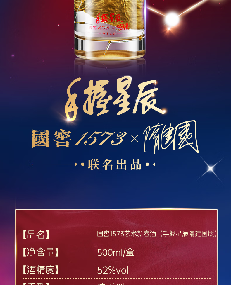 泸州老窖 国窖1573白酒 手握星辰 52度 隋建国版2025年 500ml 红金色(单位:瓶)