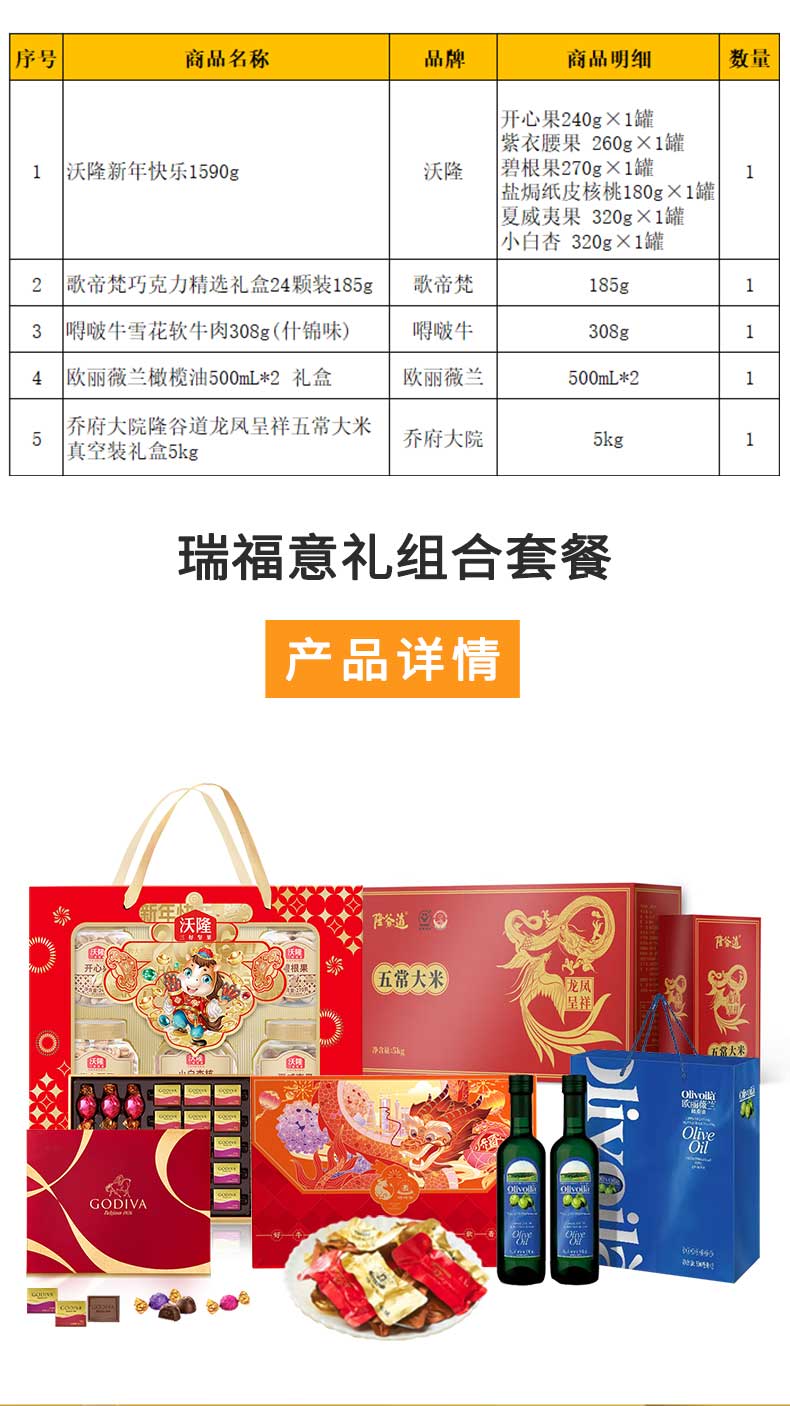 沃隆 /歌帝梵/嘚啵牛/欧丽薇兰/乔府大院-坚果巧克力牛肉干粮油 瑞福意礼组合 7083g+1000ml 红色(单位:套)