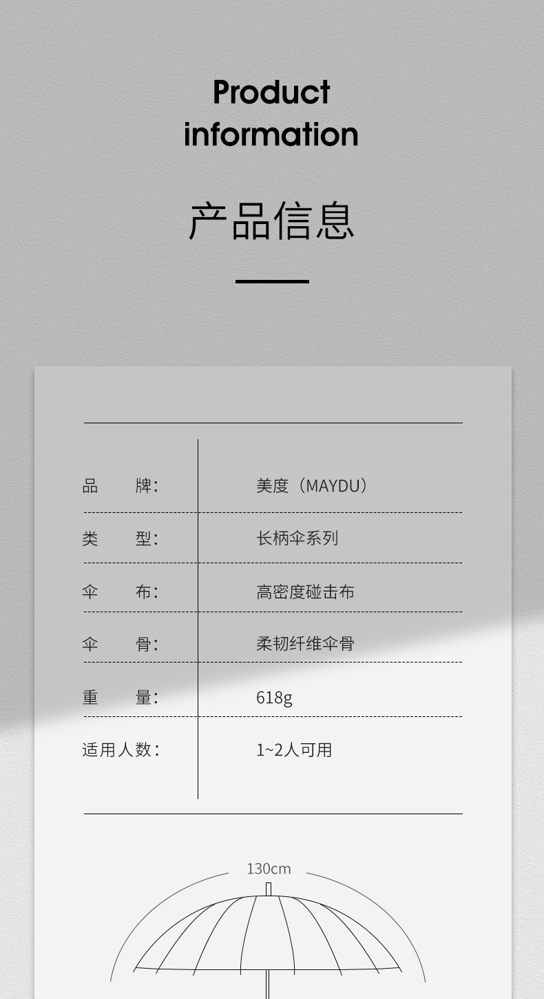 美度M5003超大商务长柄晴雨伞63.5cm*24K/110cm (单位:把) 藏青色(蓝色)