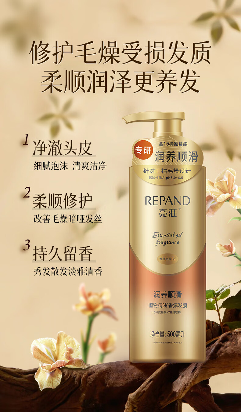 亮荘 植物精油香氛发膜 持久留香防毛躁改善干枯 500ml 奶茶杏(单位:瓶)