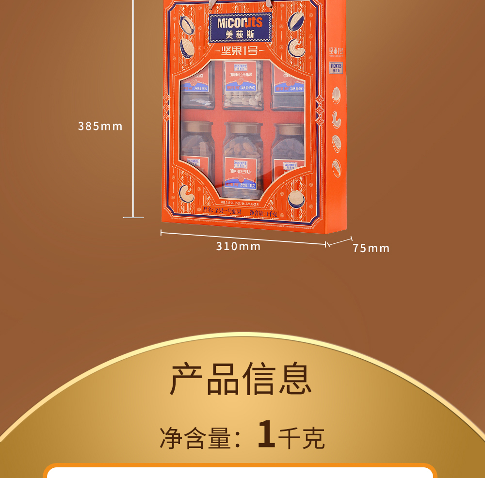美荻斯 坚果 1号甄果 1000g 灰橙色(单位:盒)