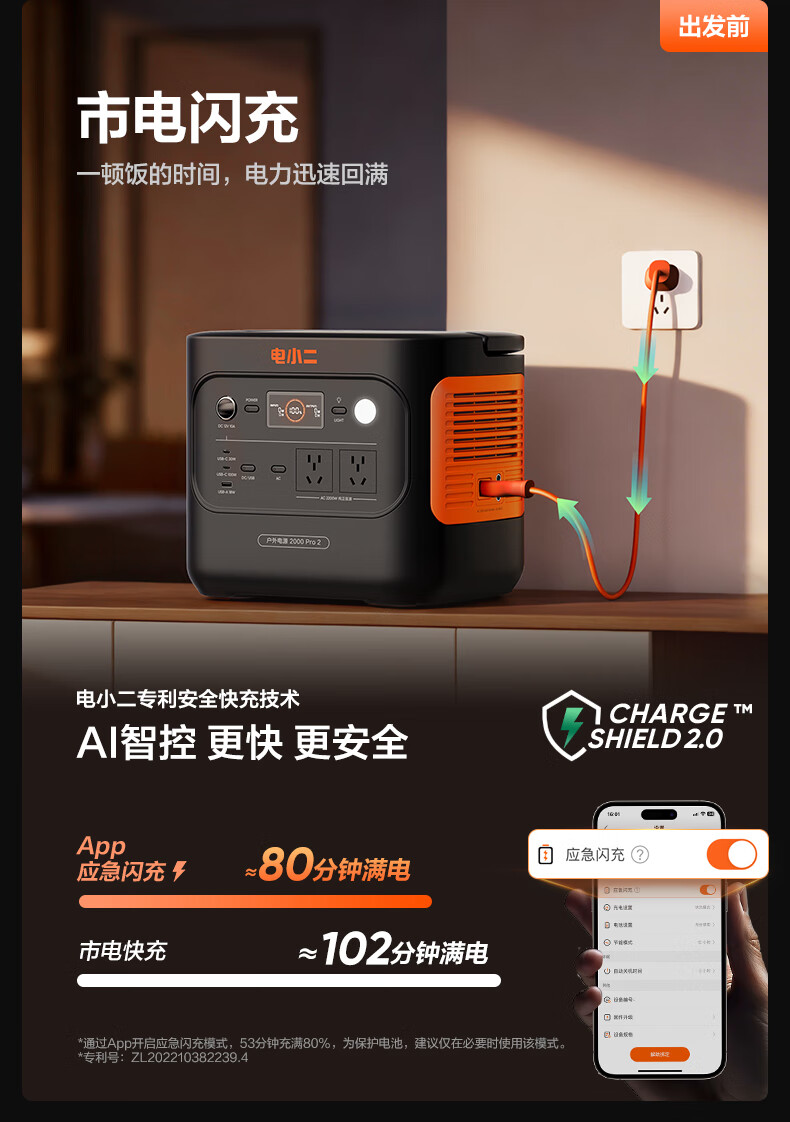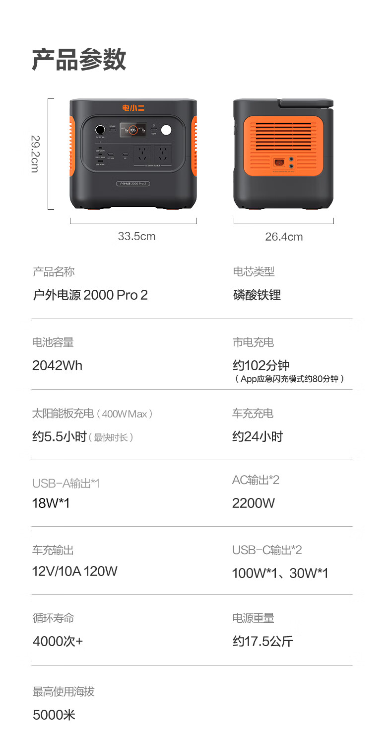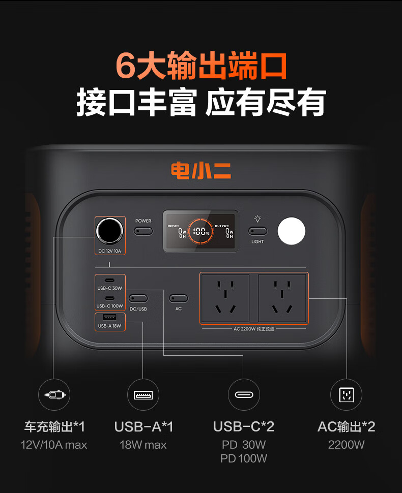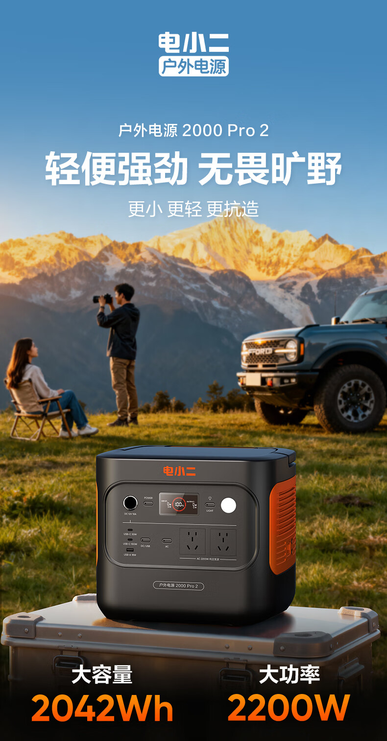 电小二 户外电源 2000Pro2 2200W大功率 黑色(单位:台)