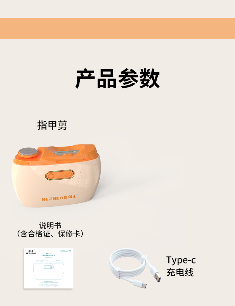 和正(HEZHENG) 电动指甲剪 HZ-ZJ3 500mah 橙色(单位:个)