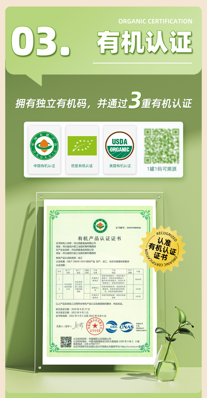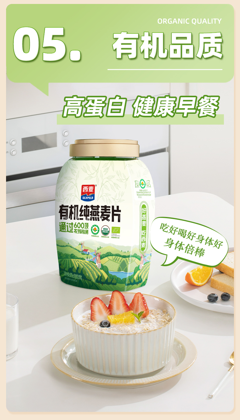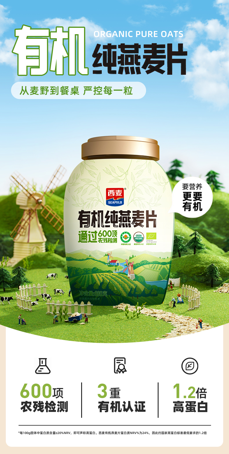 西麦(SEAMILD) 有机纯燕麦片礼盒 锁鲜罐装 1760g(880g*2) 白色(单位:组)