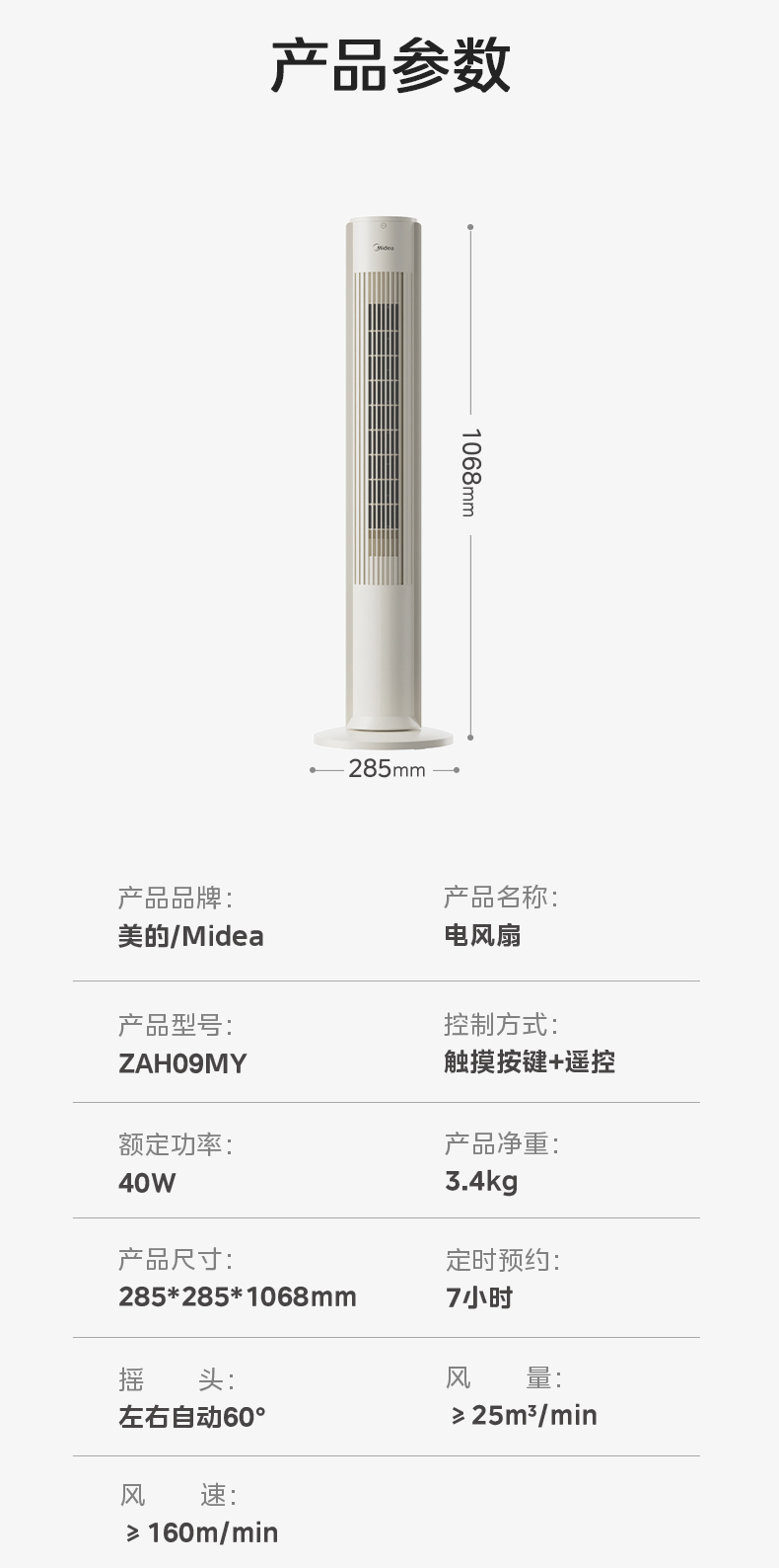 美的(Midea) 无叶塔扇 ZAH09MY 40W 白色(单位:台)