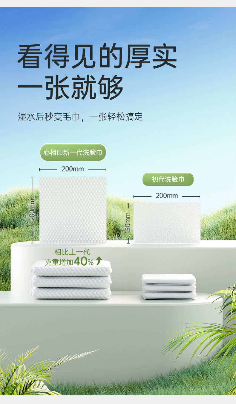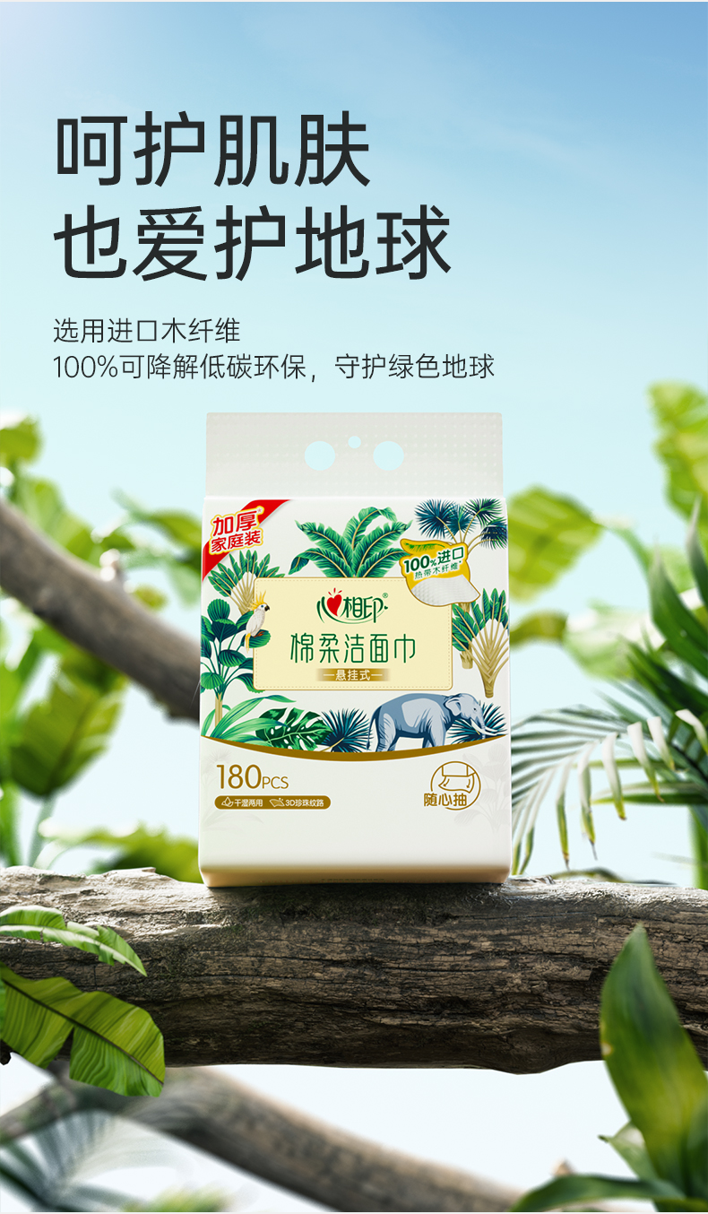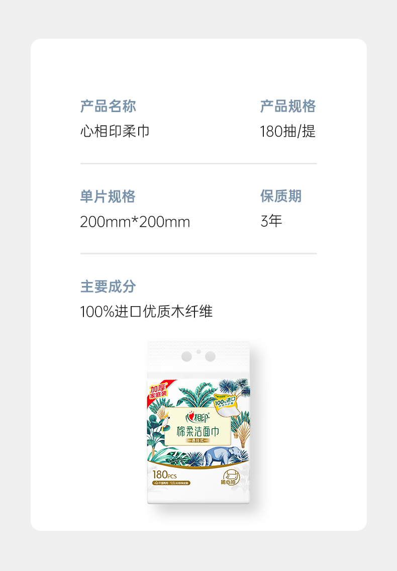 心相印 棉柔系列180片装悬挂式洗脸巾 XCD180+P1 2提*1箱 白色(单位:箱)