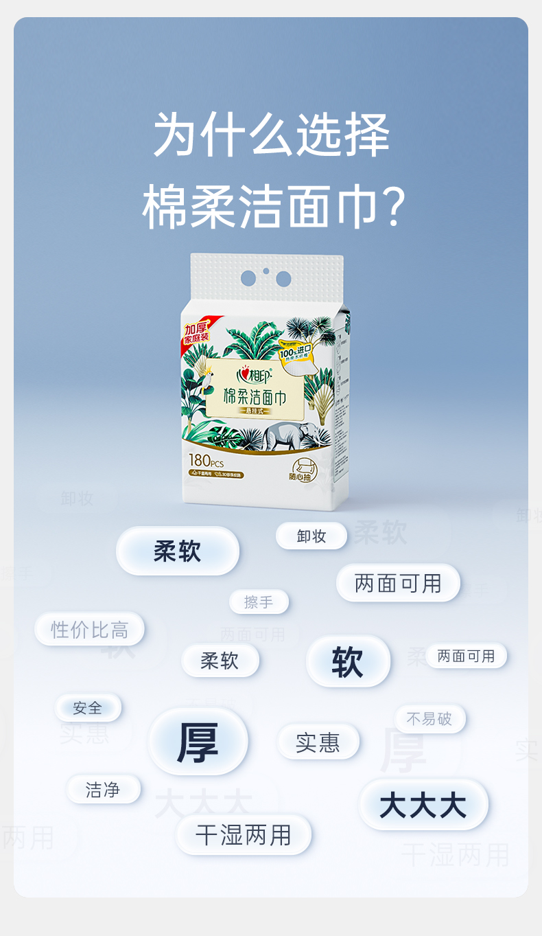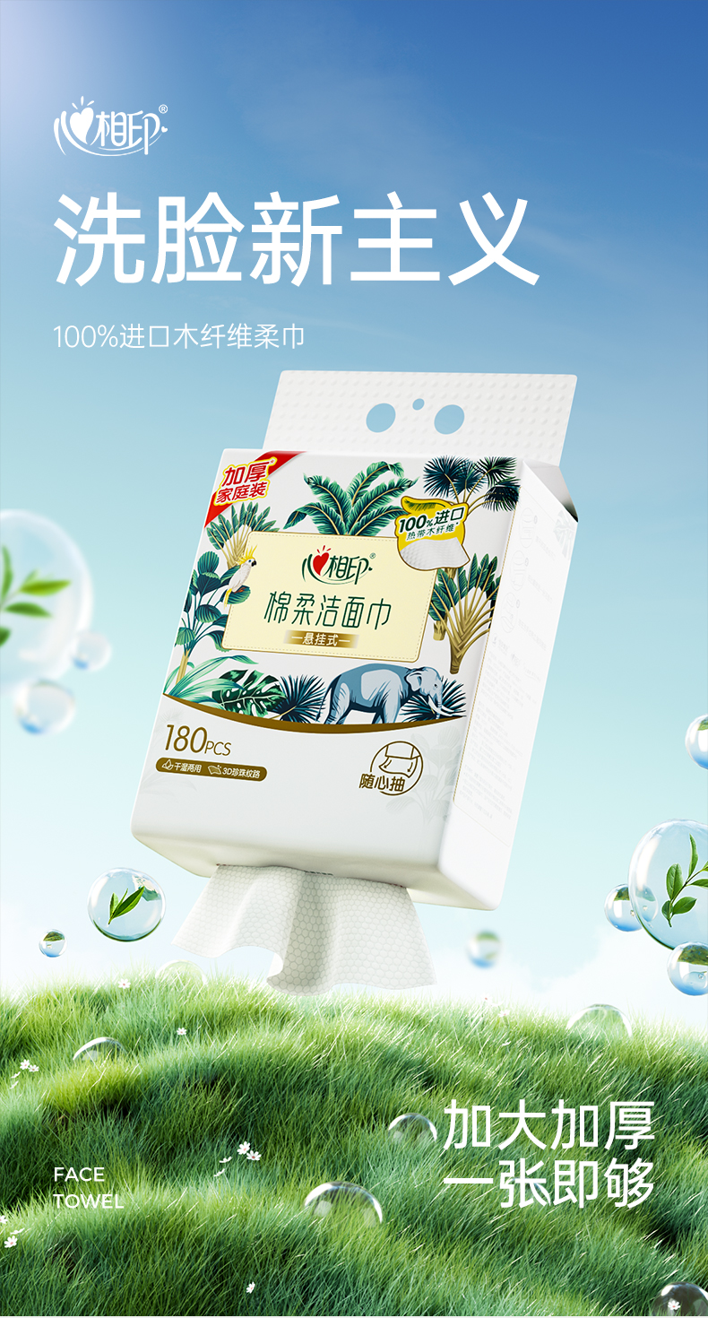 心相印 棉柔系列180片装悬挂式洗脸巾 XCD180+P1 1提 白色(单位:提)