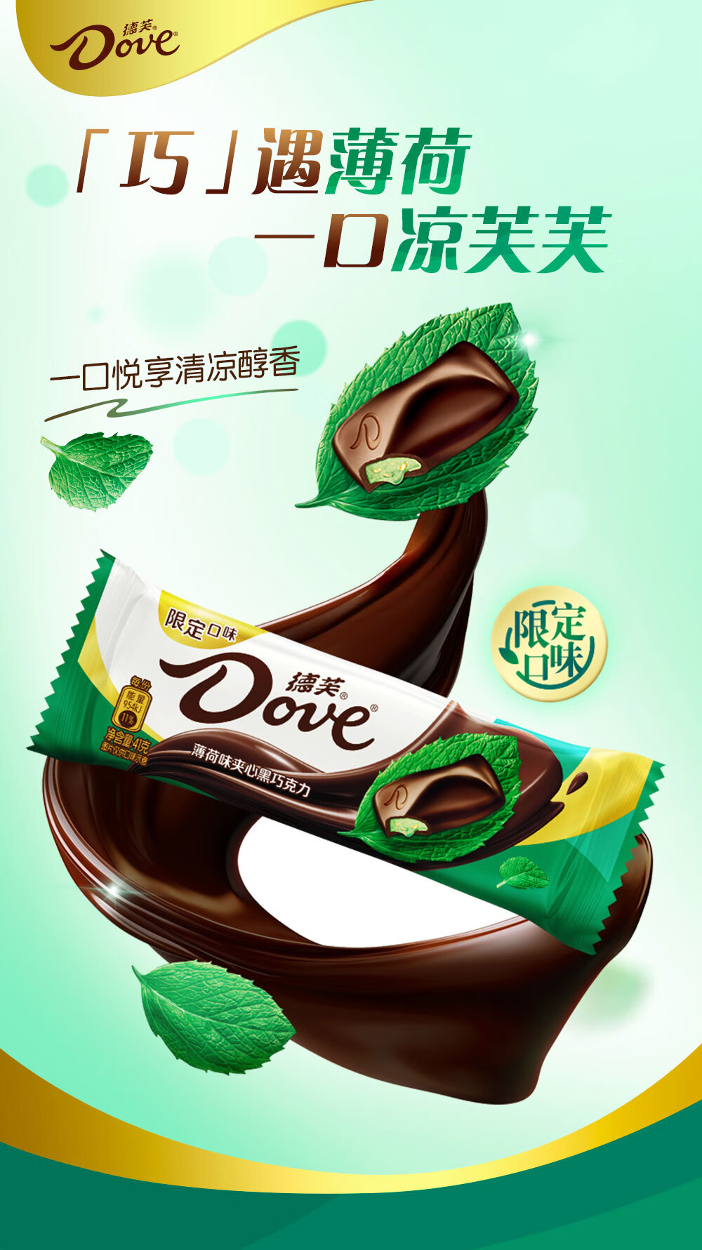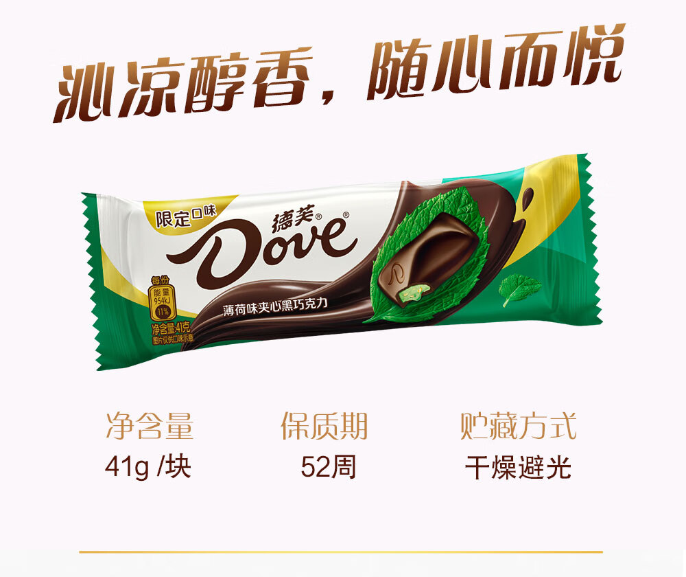 德芙(Dove) 夹心黑巧克力 薄荷味 41g*12条 混色(单位:盒)