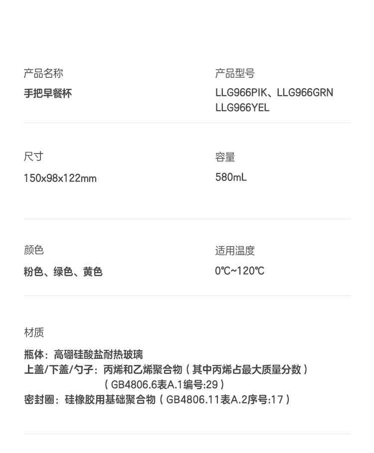 乐扣乐扣(LOCK&LOCK)手把早餐杯LLG966(580ML) 黄色
