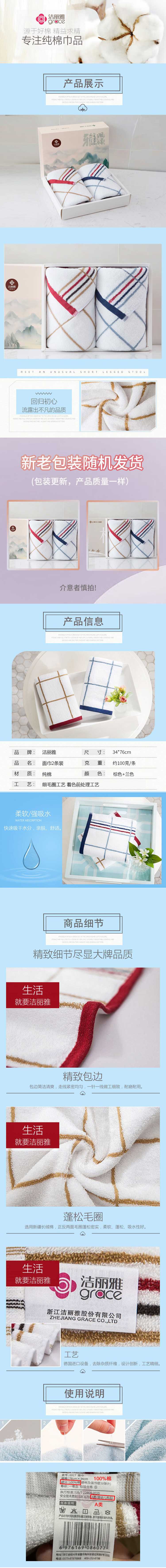 洁丽雅(Grace) 礼盒 纯棉洗脸巾加厚毛巾 2条装 混色(单位:盒)