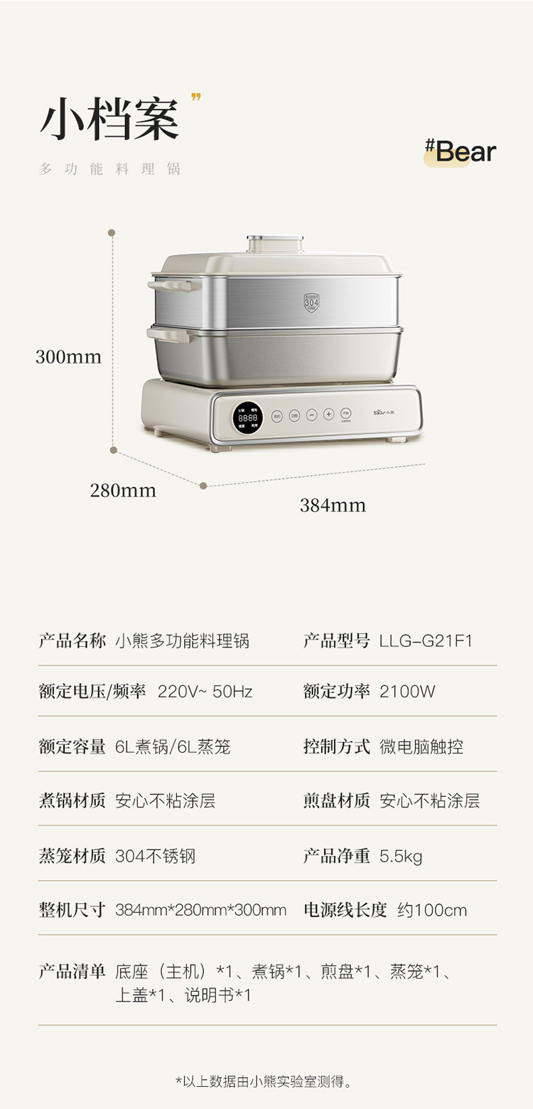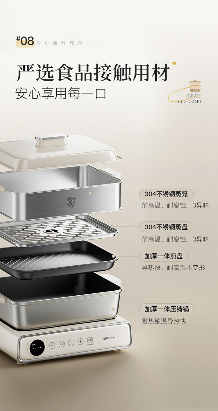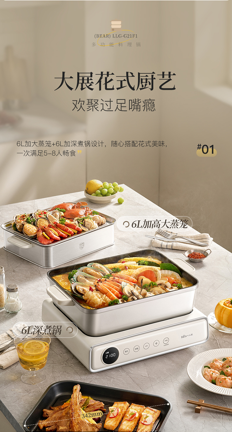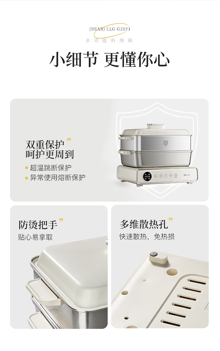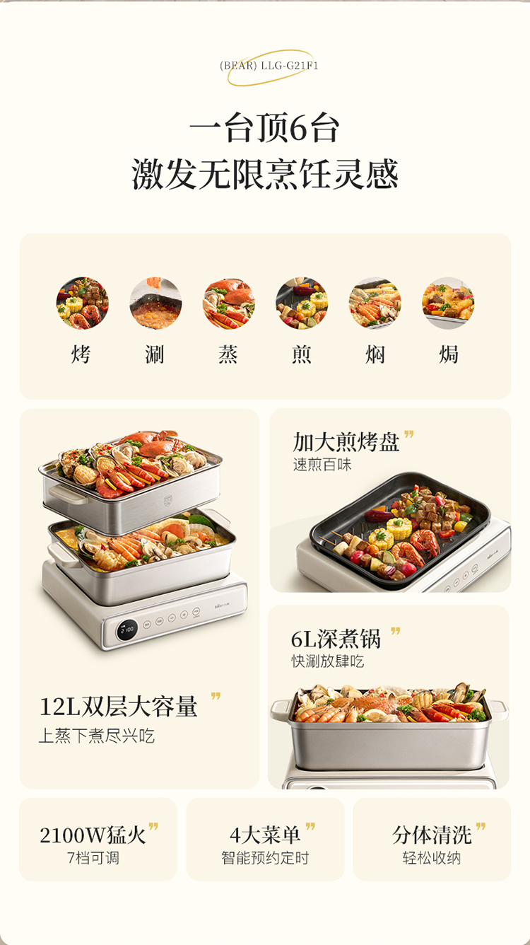 小熊(Bear) 多功能料理锅 LLG-G21F1-P01 6L 米黄(单位:台)