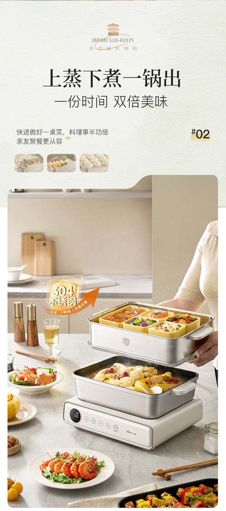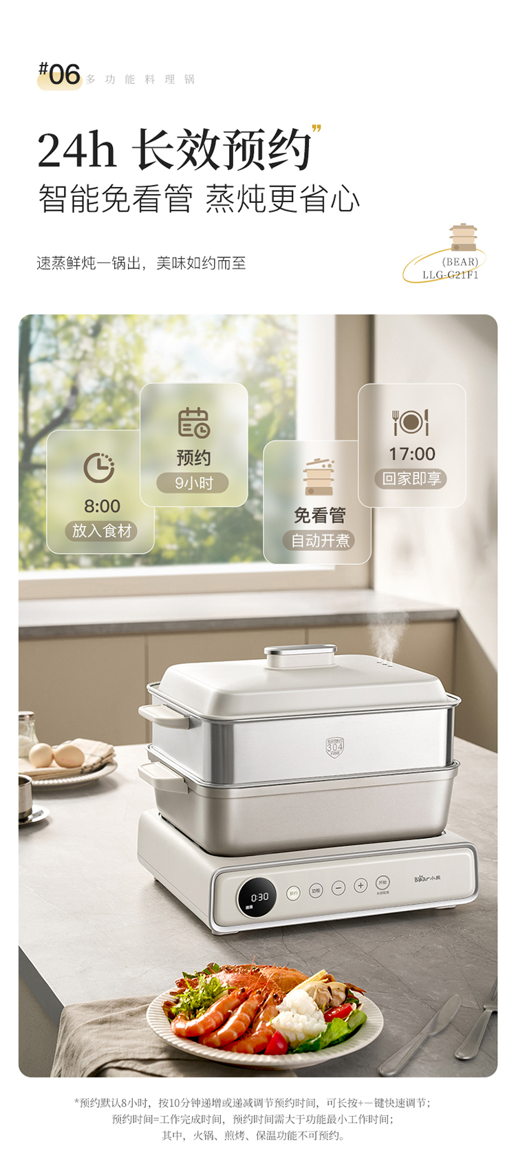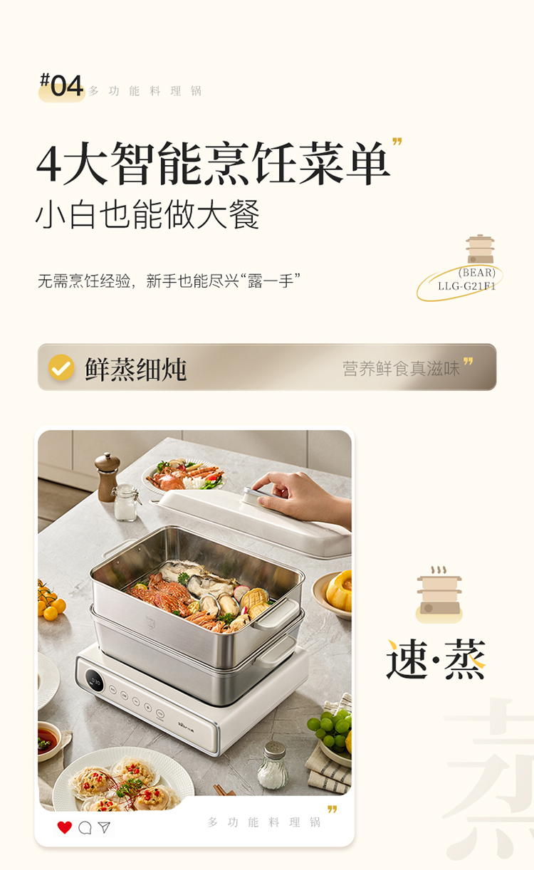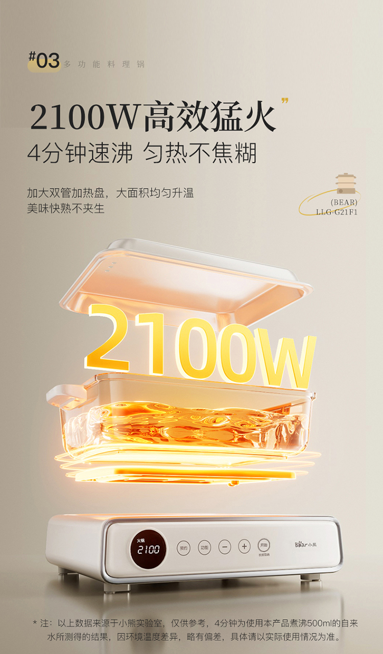 小熊(Bear) 多功能料理锅 LLG-G21F1-P01 6L 米黄(单位:台)