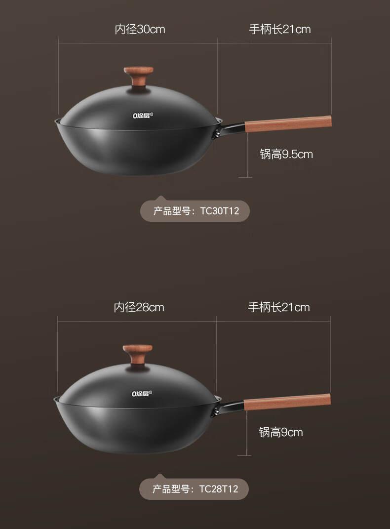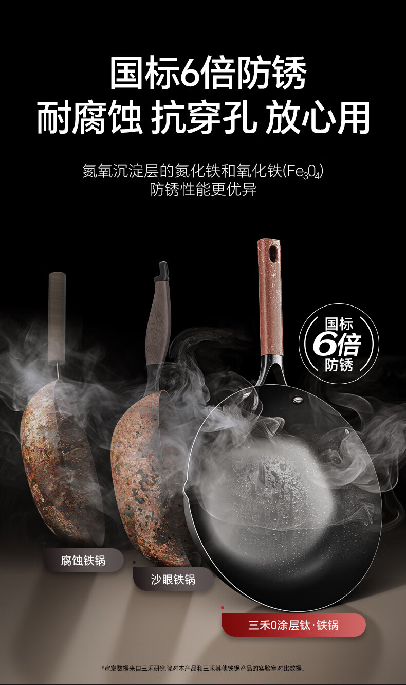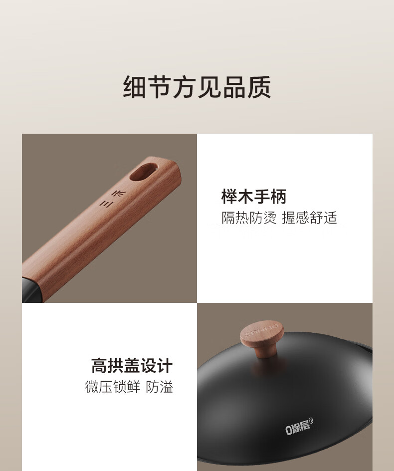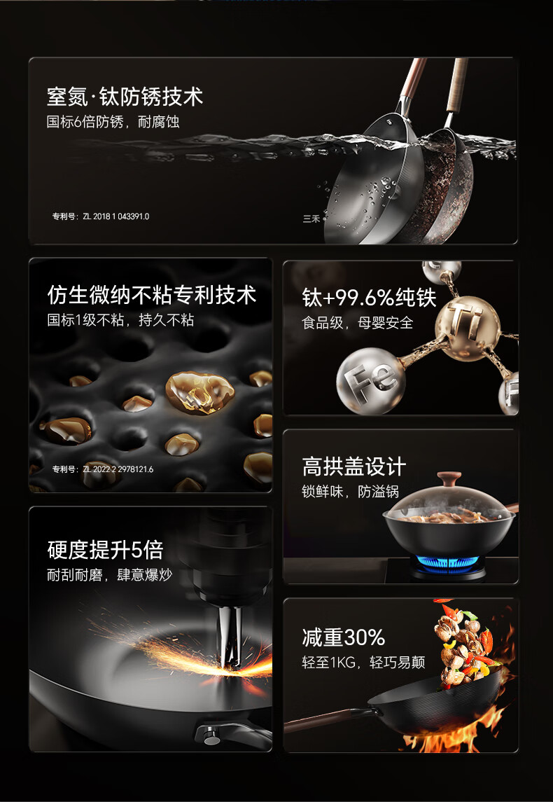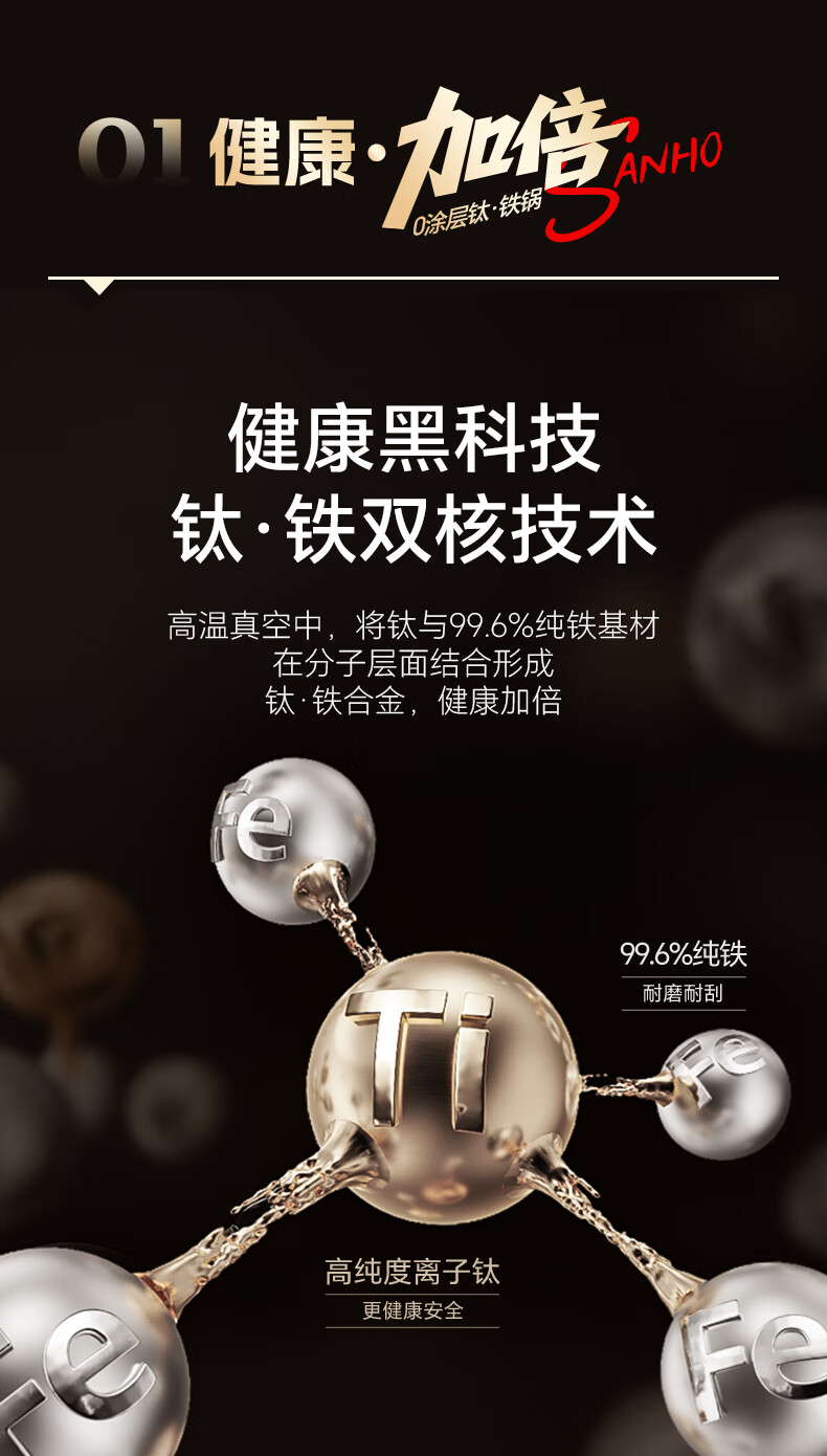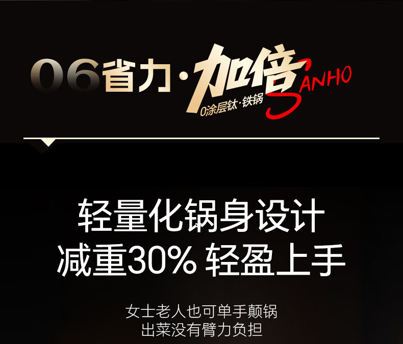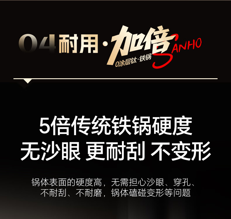 三禾(SANHO) 0涂层钛·铁锅 TC30T12 30cm 黑色(单位:个)