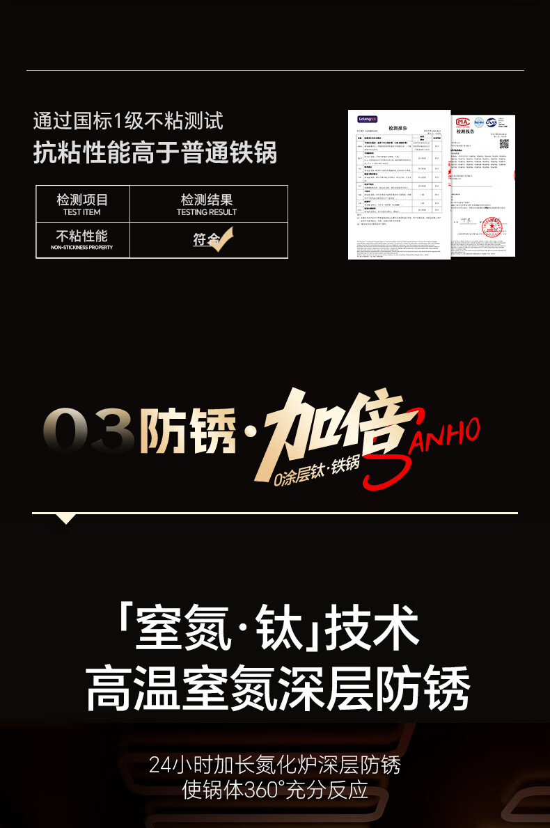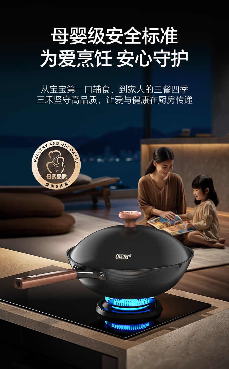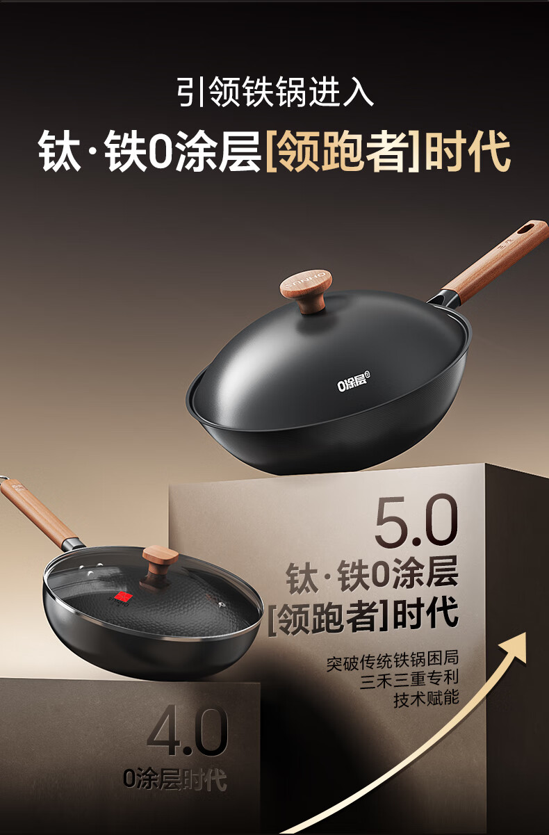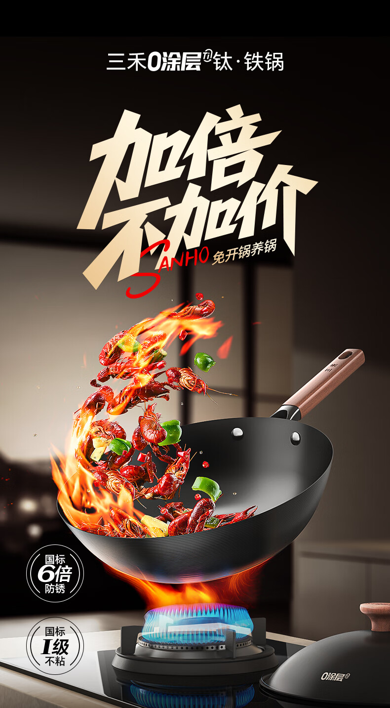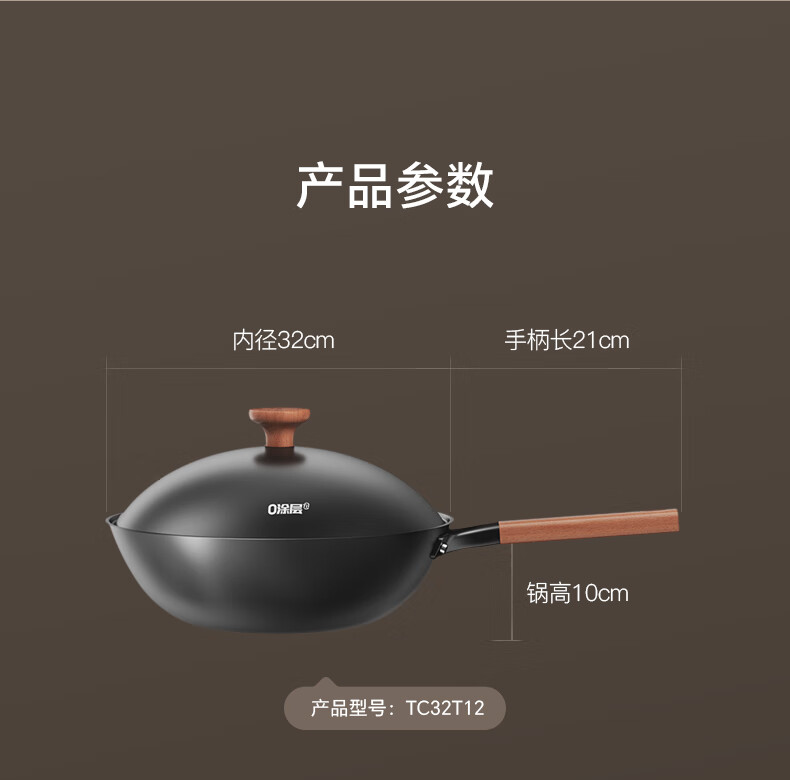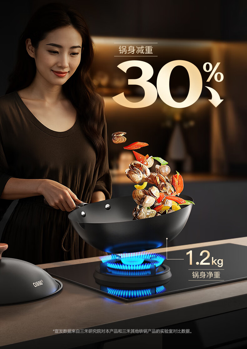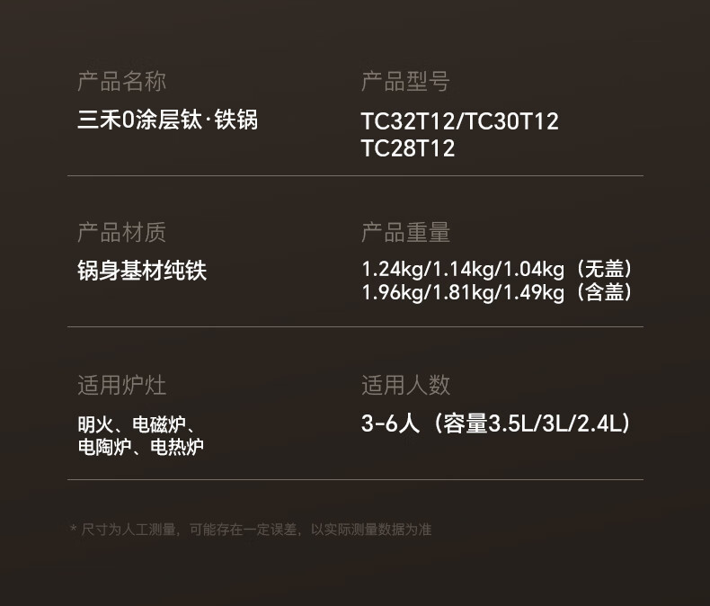 三禾(SANHO) 0涂层钛·铁锅 TC30T12 30cm 黑色(单位:个)