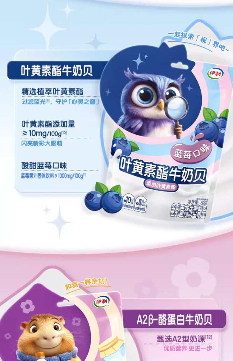 伊利 叶黄素酯 牛奶贝(蓝莓味) 80g*2包 混色(单位:组)