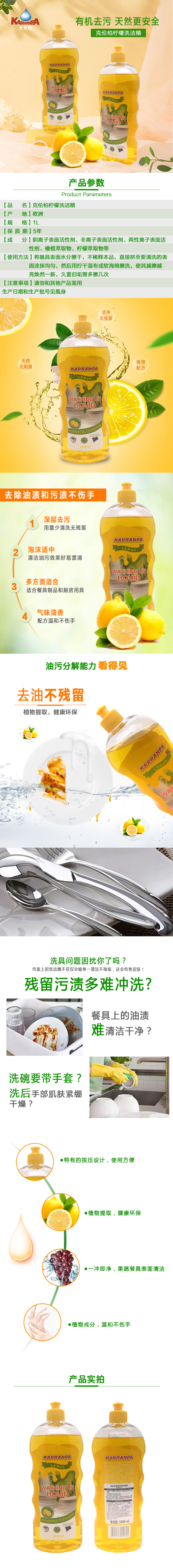 欧洲进口克伦柏柠檬洗洁精(柠檬精华)(新疆、西藏不发) 图片色 黄色