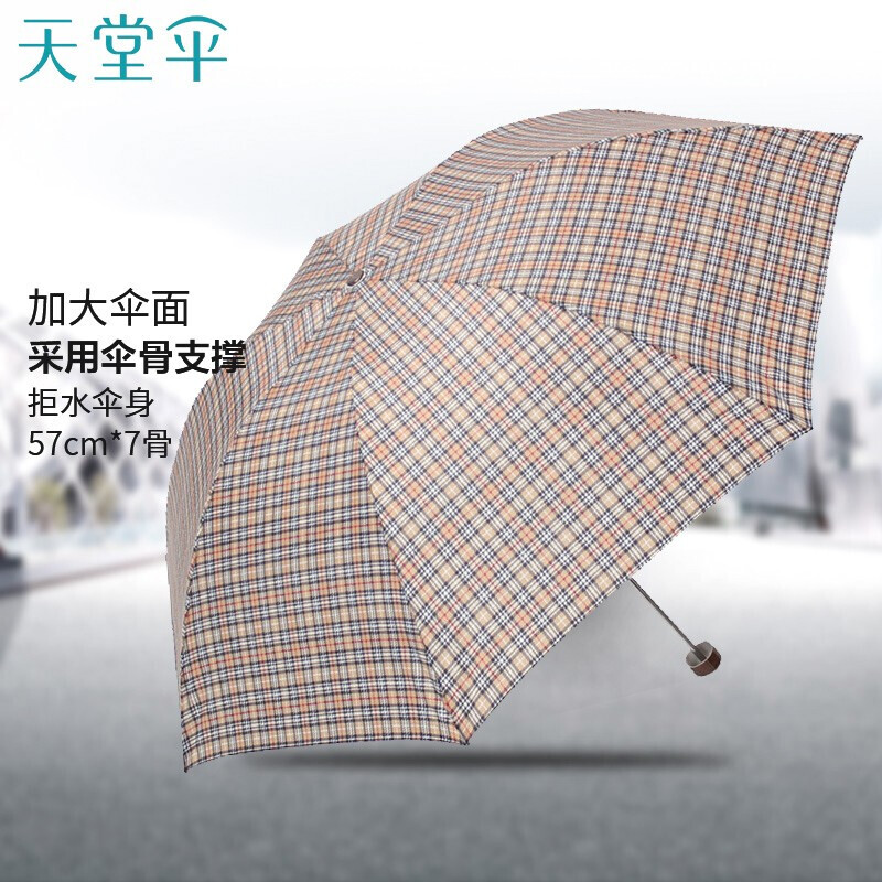 天堂伞 苏格兰风格格子三折钢伞晴雨伞339S(单位:把) 棕色