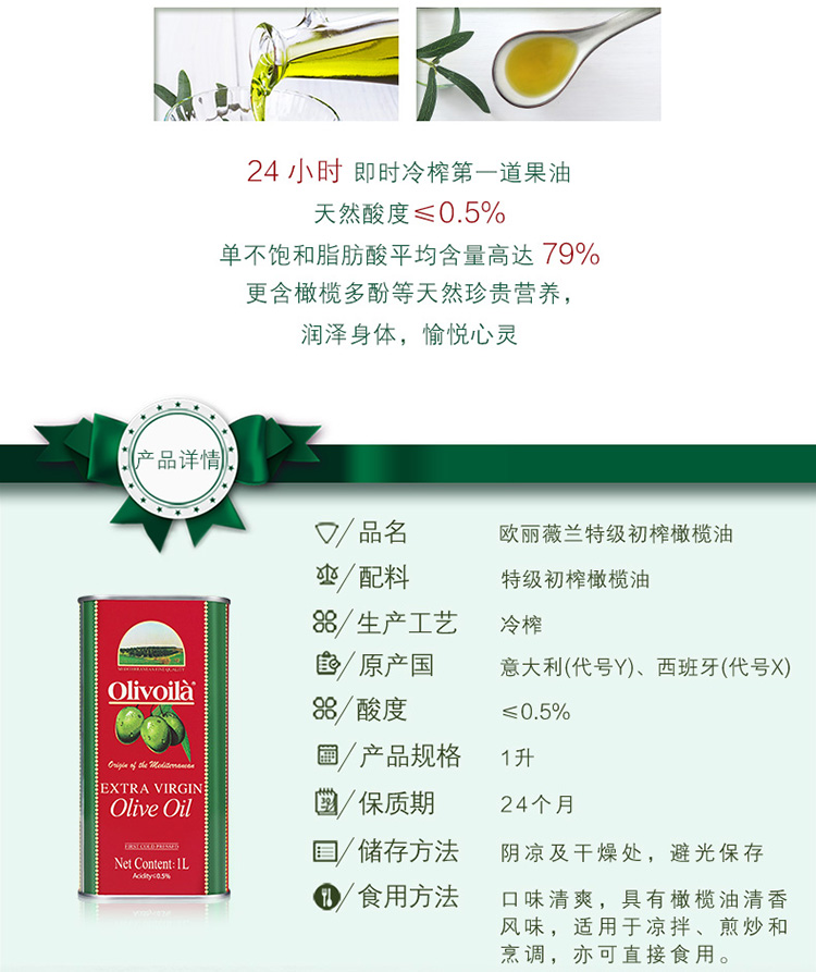 欧丽薇兰 橄榄油红装1L (单位:瓶) 红色