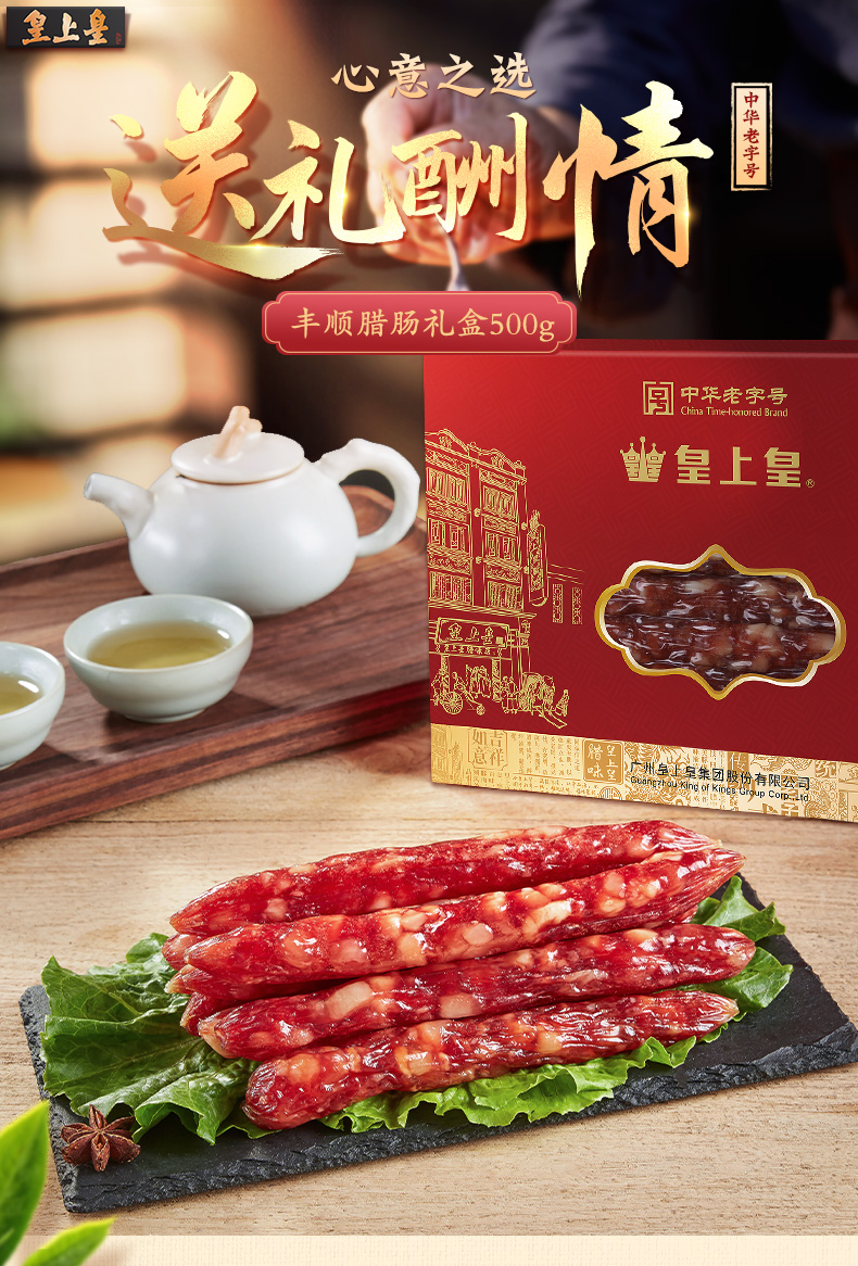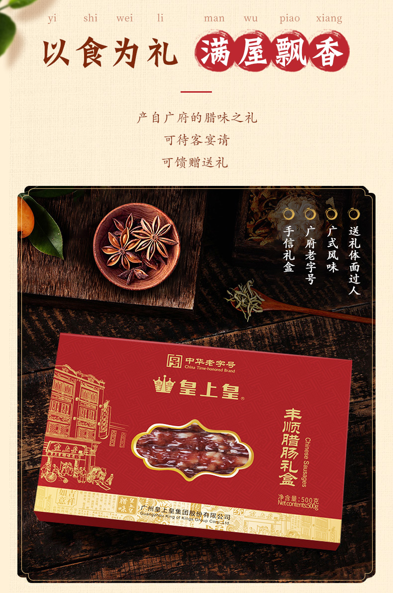 皇上皇 丰顺腊肠礼盒500g 年货手信腊味礼盒中华老字号 红色