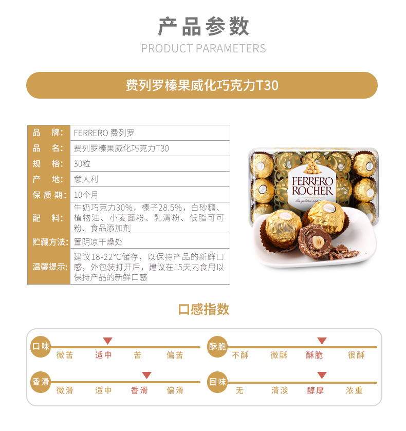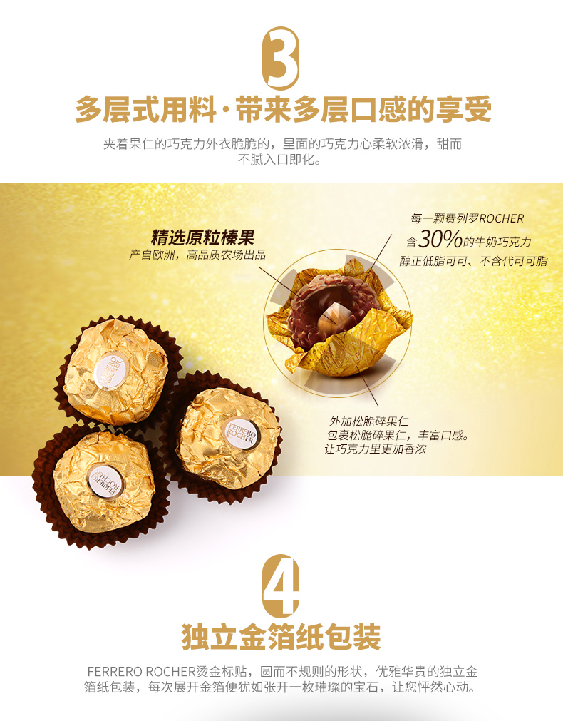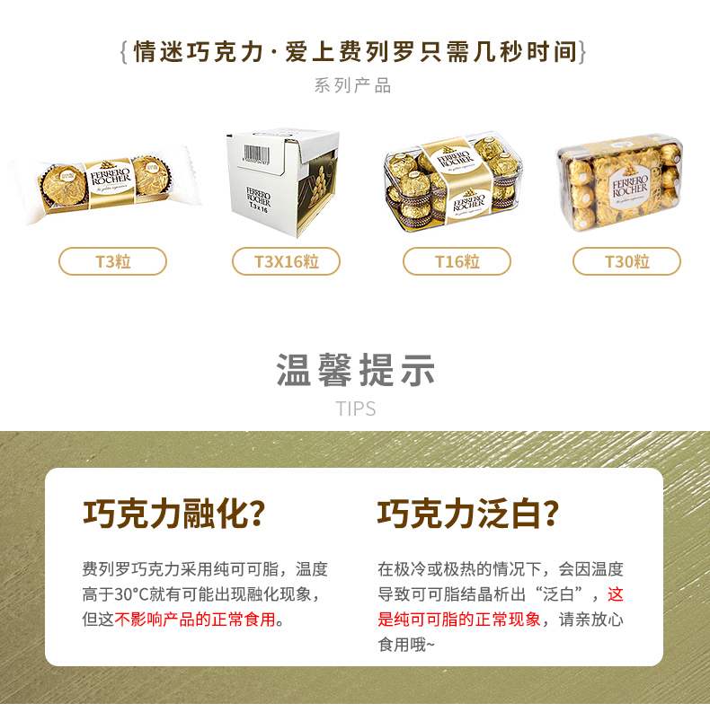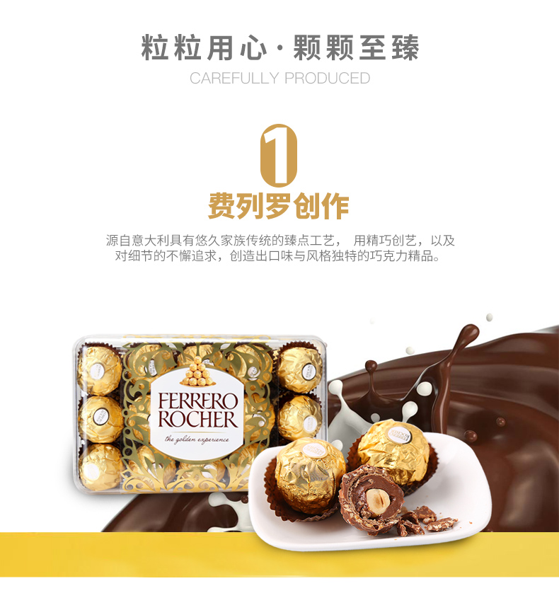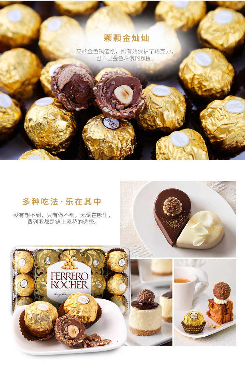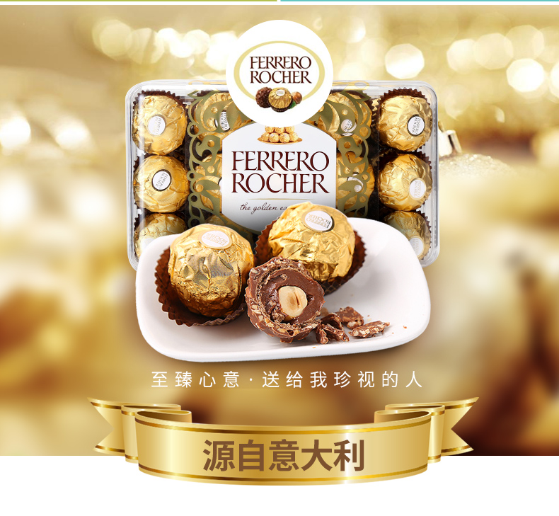 原装进口费列罗榛果威化巧克力30粒装(T30)礼盒装375g 玫瑰金