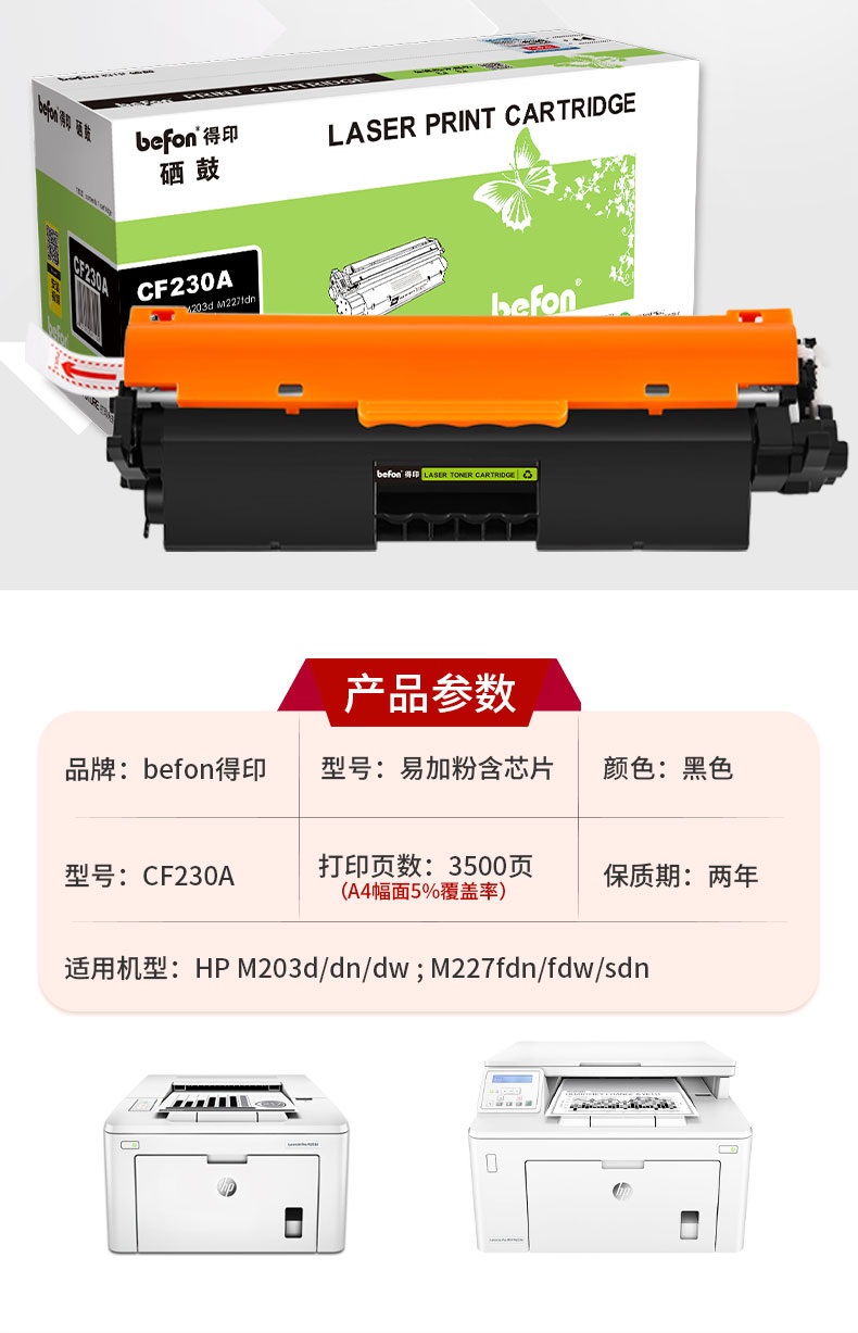 得印CF230A粉盒 适用惠普m227fdwm203dw m203dn m227sdn 单位:支 黑色