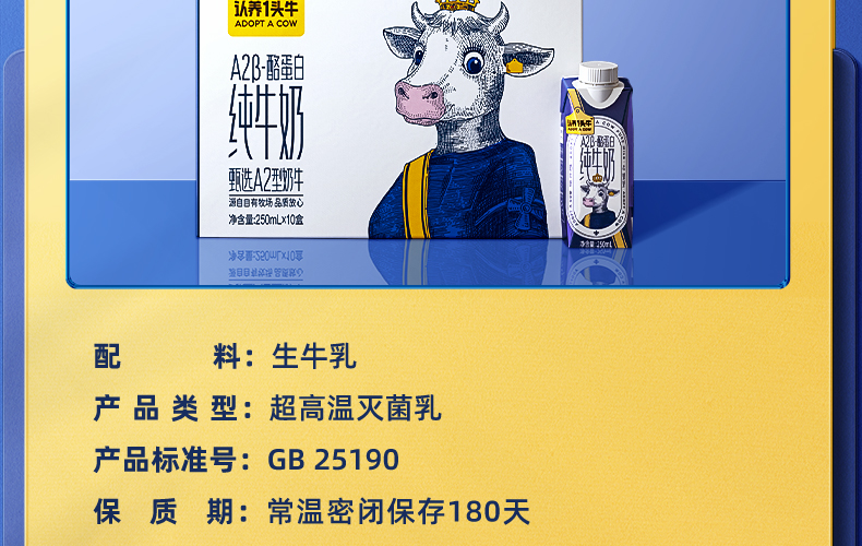 认养一头牛 A2奶250ML梦幻盖*10盒3.15kg/提 蓝色