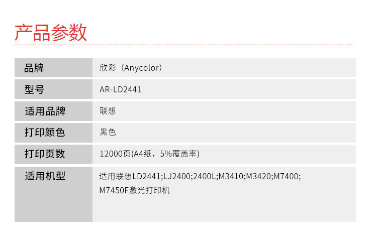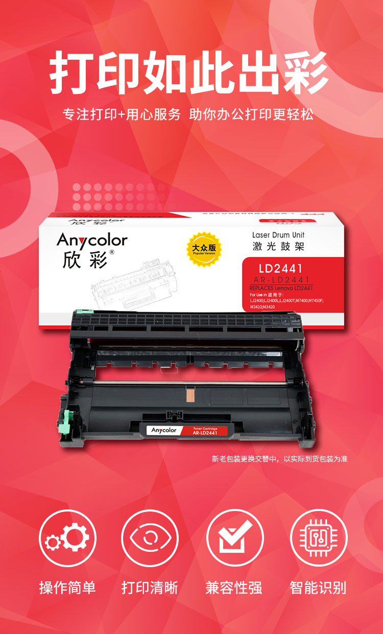欣彩(Anycolor) AR-LD2441 大众版 适用联想 LJ2400T LJ2400 鼓架 1.00 只/支 (计价单位:支) 黑色 黑色