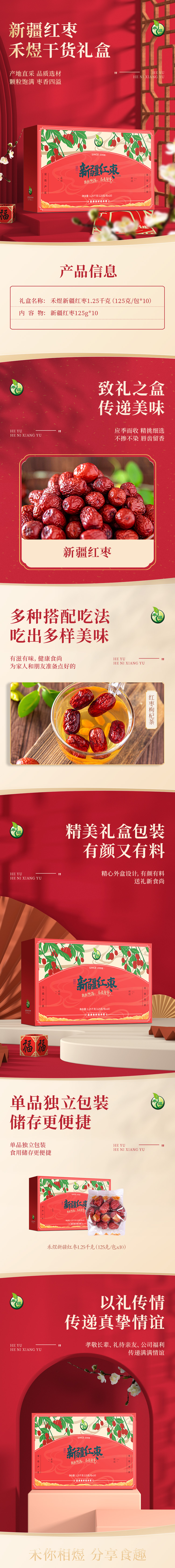 禾煜新疆若羌红枣礼盒1250g(单位:盒) 红色