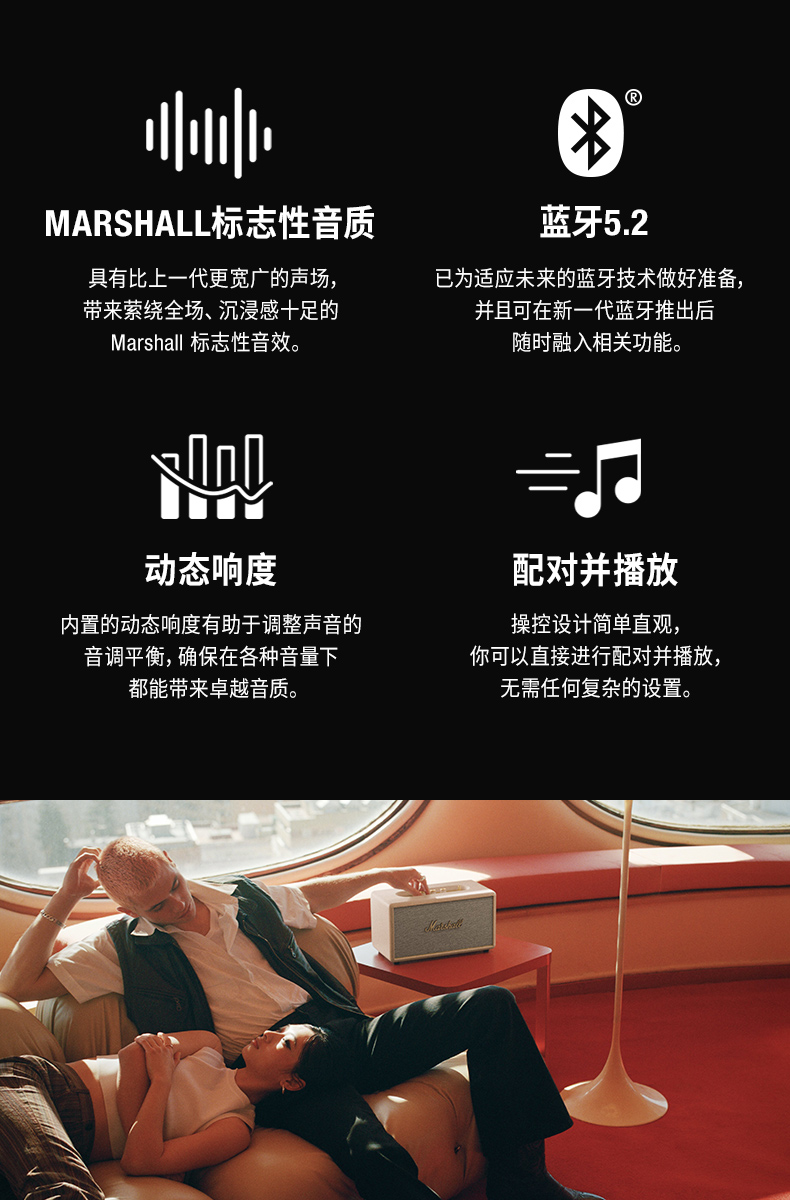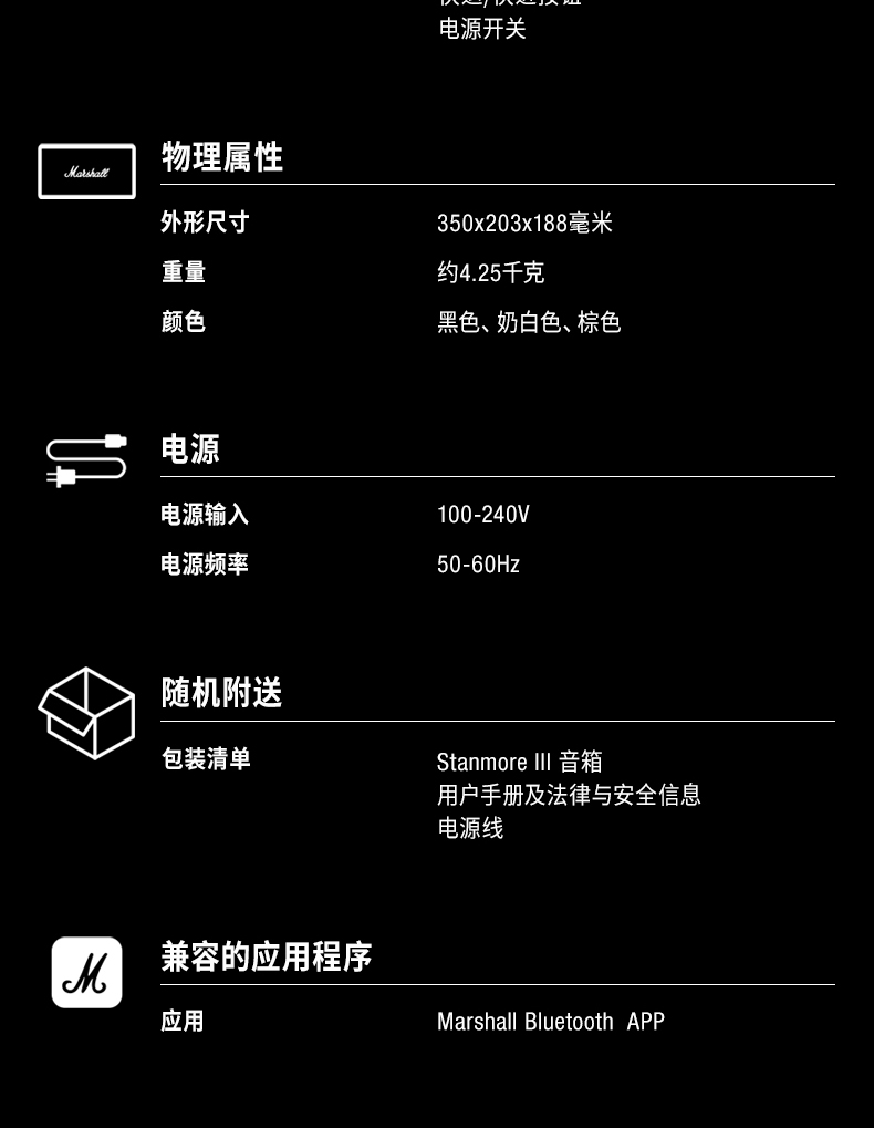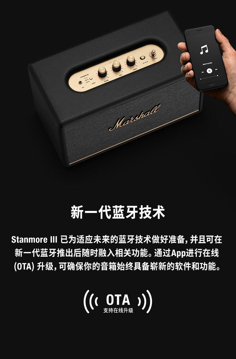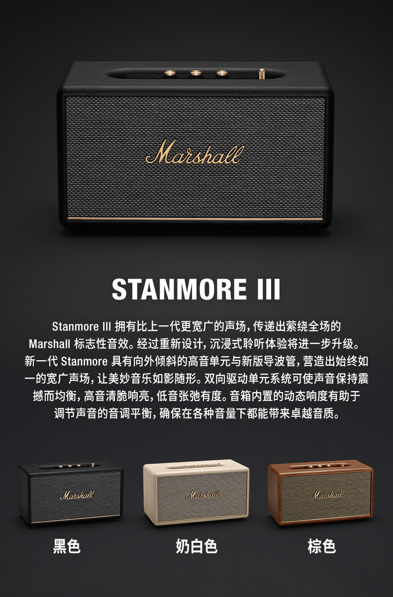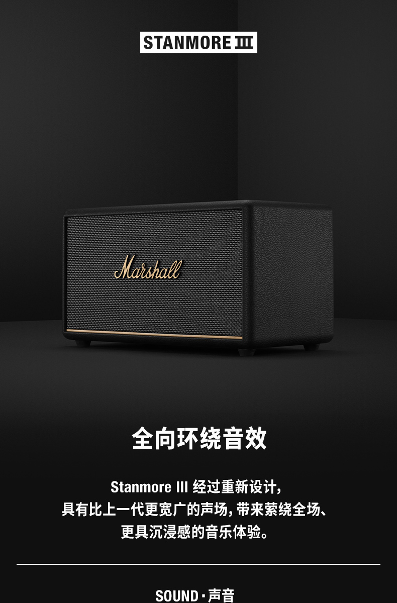 MARSHALL(马歇尔)STANMORE III 音箱3代无线蓝牙摇滚家用重低音音响 黑色