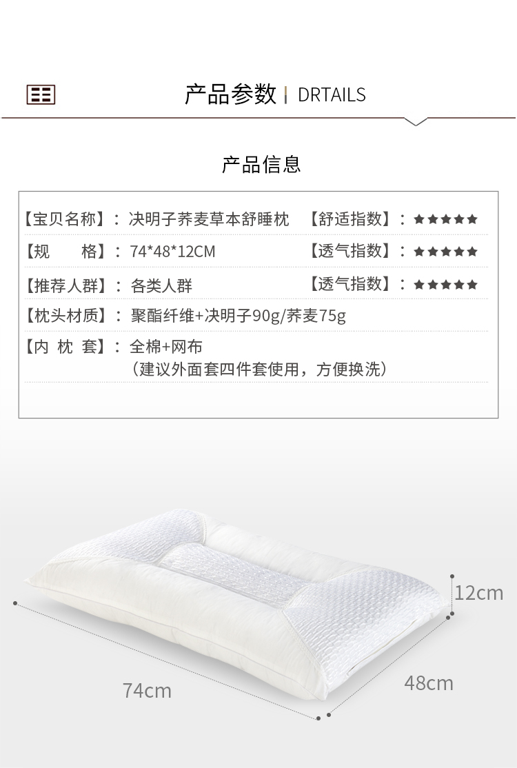 睡眠博士决明子枕头成人单人双人荞麦枕助睡眠护颈椎枕枕芯家用 本白色