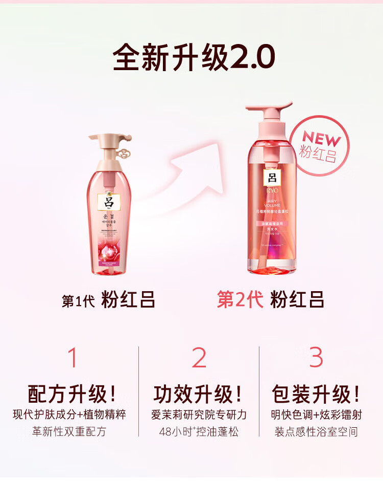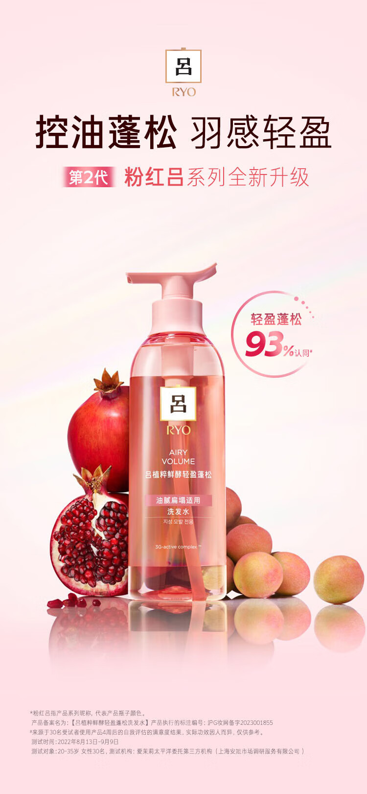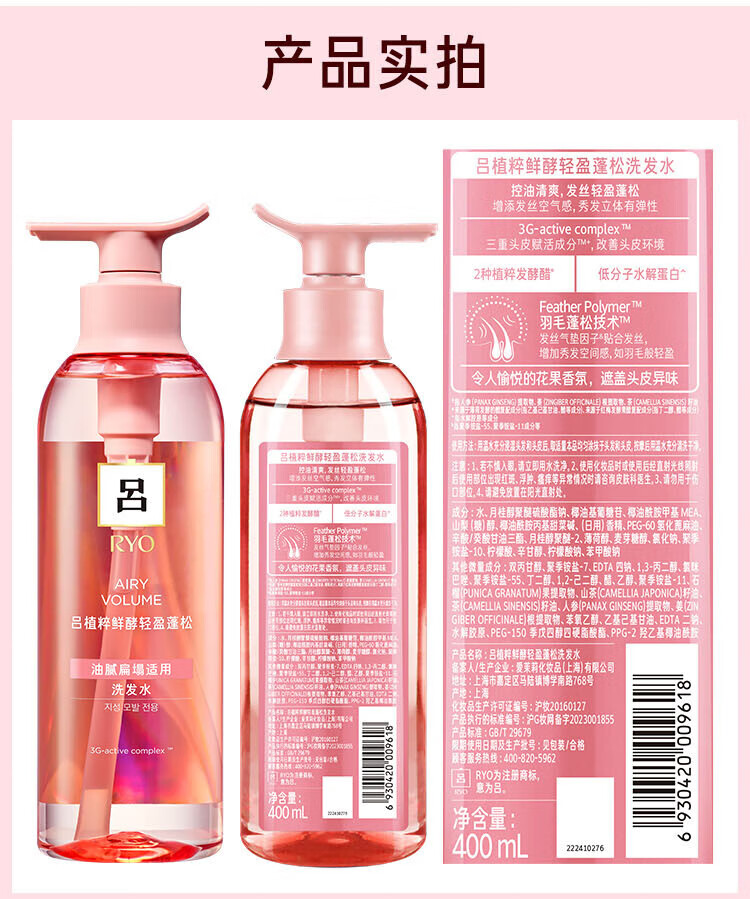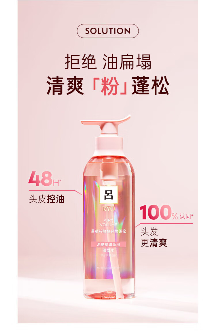 吕 洗发水 控油蓬松 400ml*1 粉色(单位:瓶)