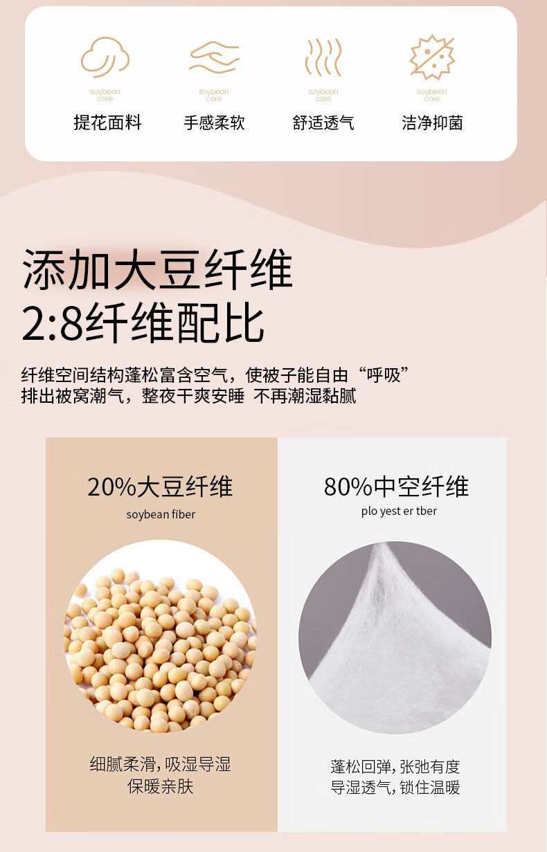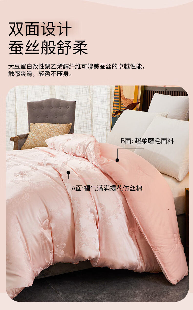 恒源祥HYX219BZ福气满满抗菌大豆保暖被150*200cm2000g(单位:床) 粉色 150*200cm
