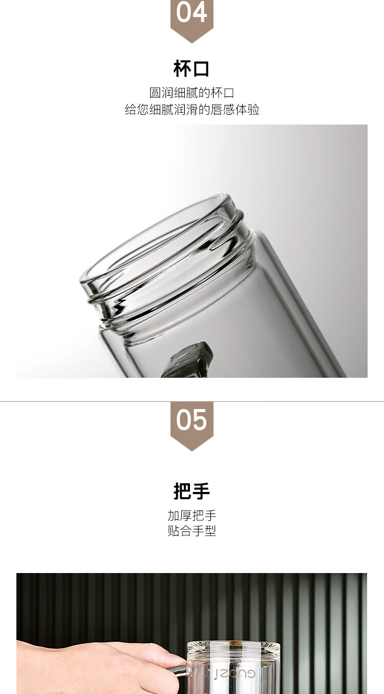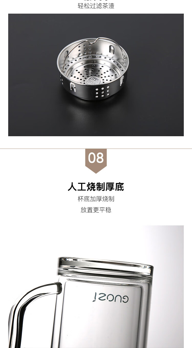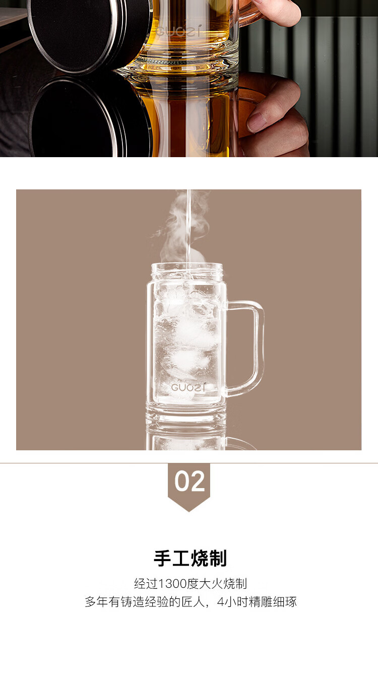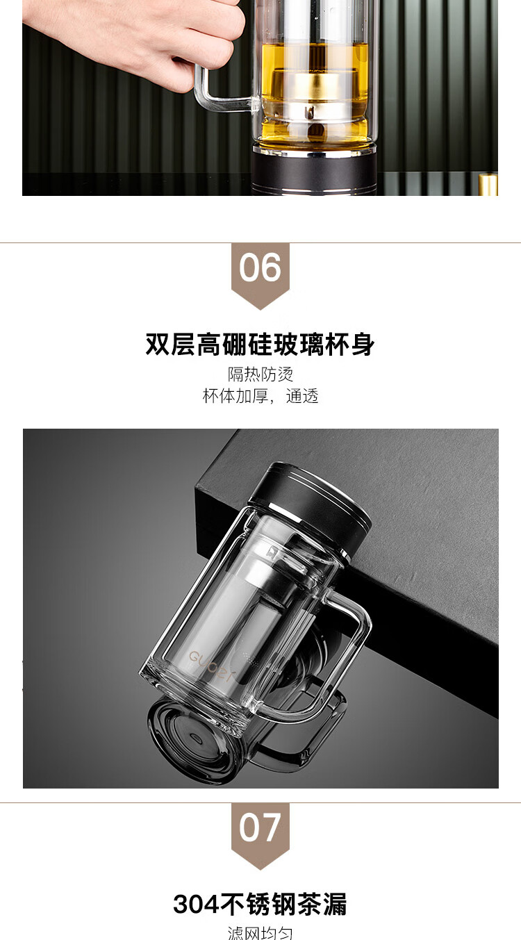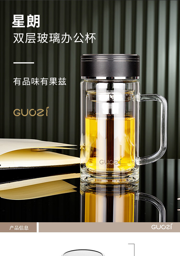 果兹(GUOZI)星朗双层玻璃办公杯GZ-S53A 350ml(单位:个) 黑色